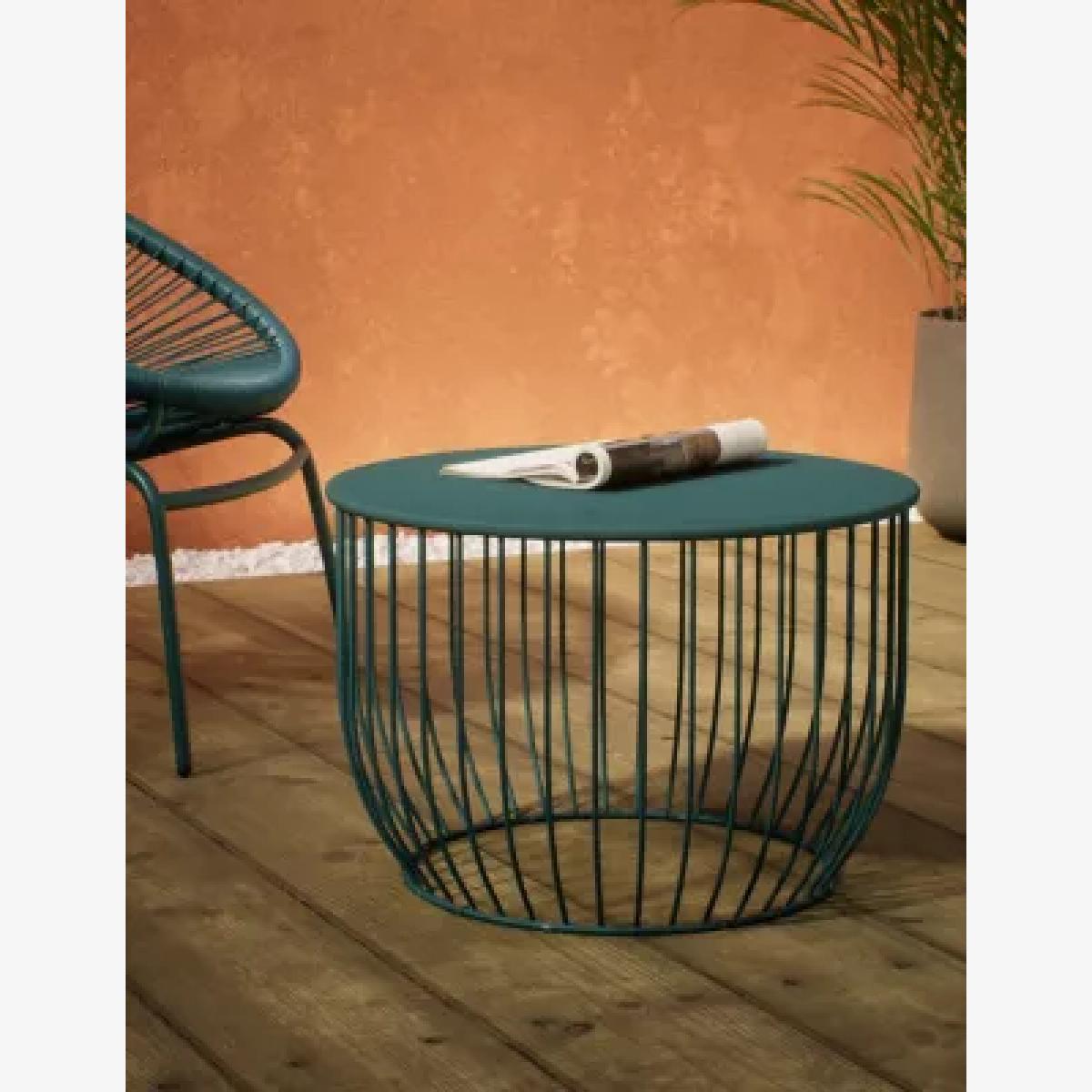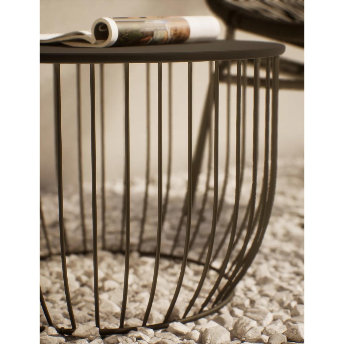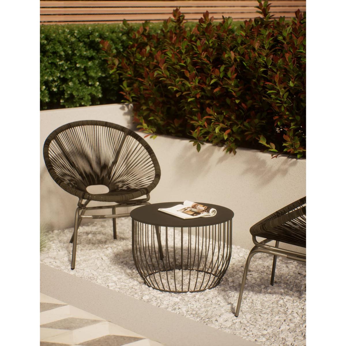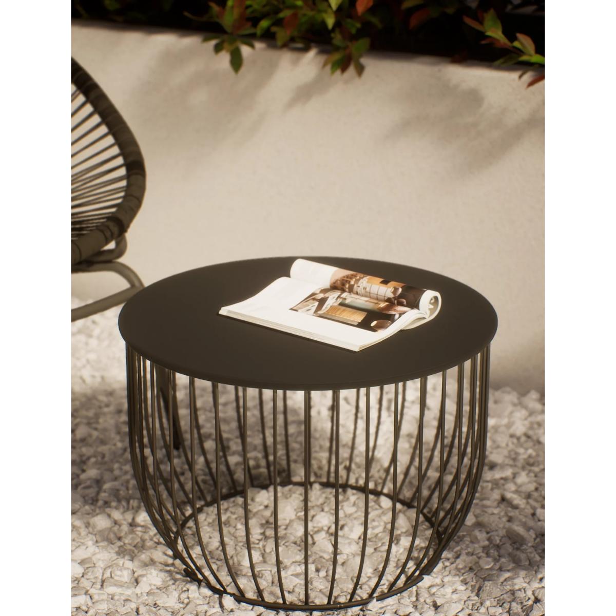 With its industrial-inspired design, the Lois coffee table makes a stylish choice for your outdoor areas. It's made in a neat round shape and sits low to the ground. The openwork wire frame is powder coated for good durability.
