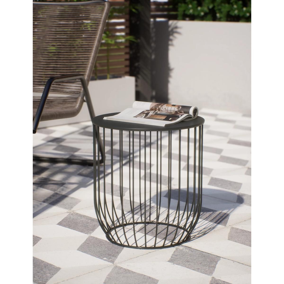 Bring a touch of industrial-inspired flair to your outdoor space with this round side table from our Lois range. Its open base is made from metal wire for a modern look and is powder coated for a smart finish. We’re so confident our furniture is built to last, our industry-leading guarantee covers any manufacturing failure on all furniture. That’s our promise, and why our furniture comes with a 10-year guarantee that you can trust. Excludes: outdoor furniture and any issues that are a result of normal wear and tear, improper care or accidental damage.