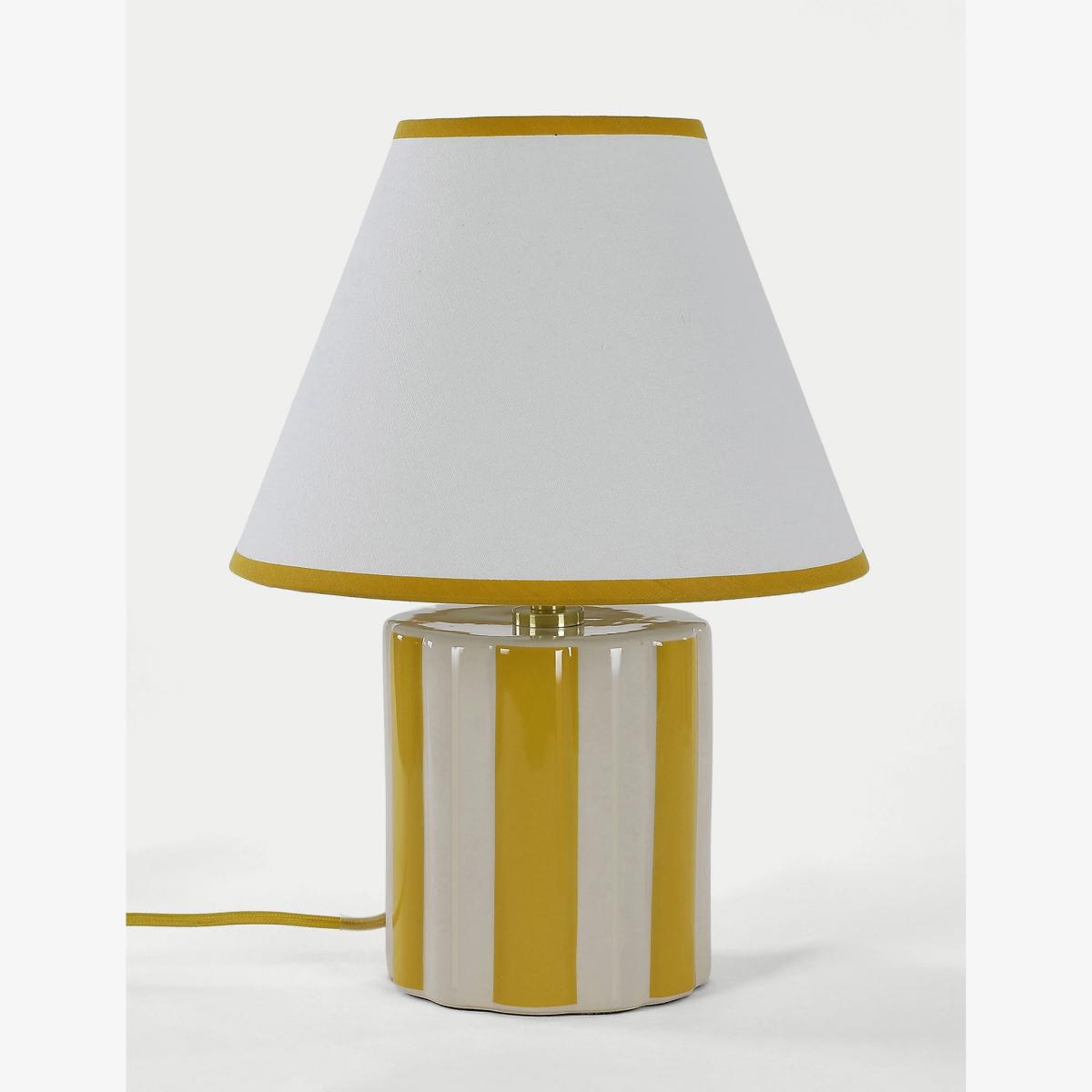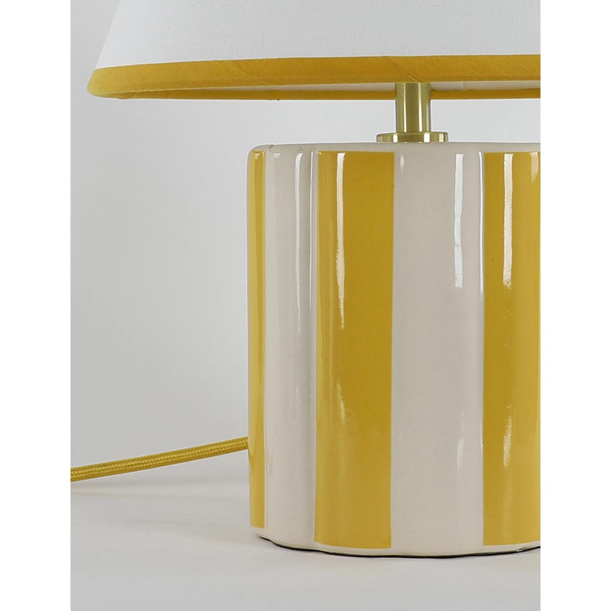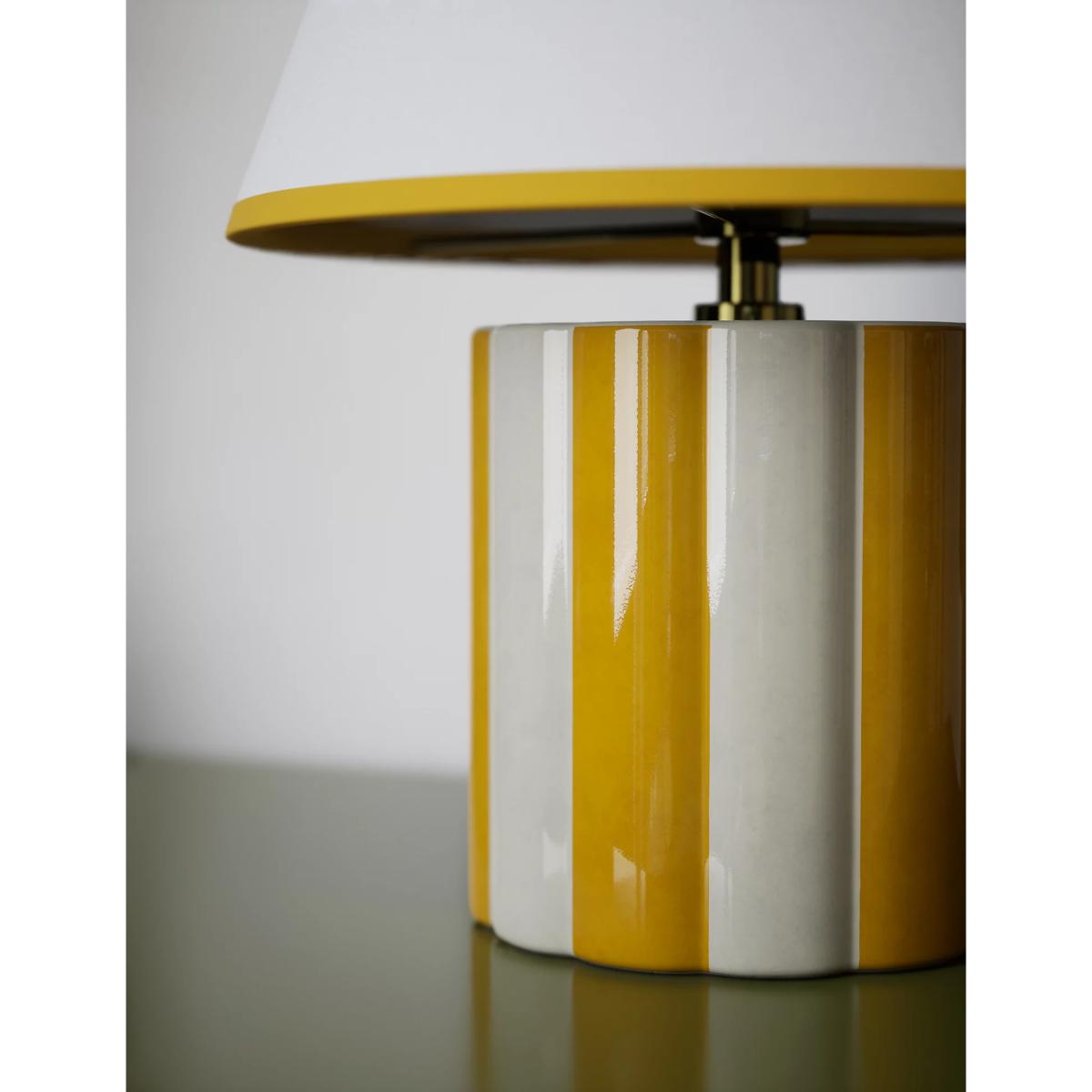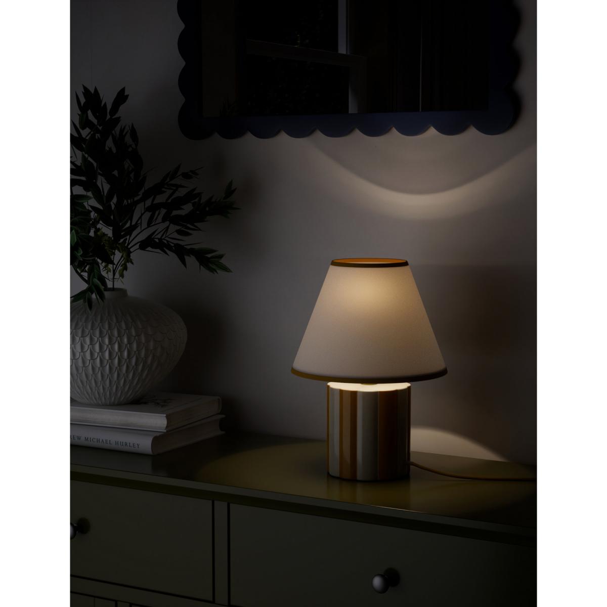 I love this lamp for its playful yet sophisticated look, making it a versatile addition to both contemporary and eclectic interiors. The Ochre colour palette adds warmth and a welcoming feel, perfect for living rooms, bedrooms, or even more casual home offices. Styling tip: place it on a side table or console to bring a pop of colour and visual interest without overwhelming the space. Its striped base offers a subtle touch of pattern, so it pairs well with solid colours or understated textures. Overall, it’s a practical and stylish choice that can jazz up a neutral scheme or complement a more colourful décor.