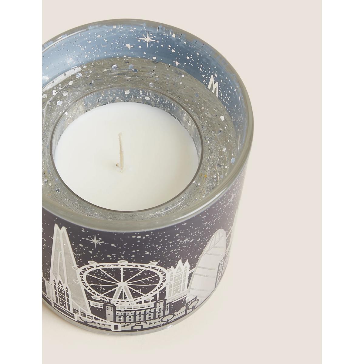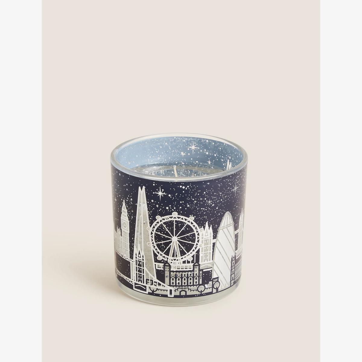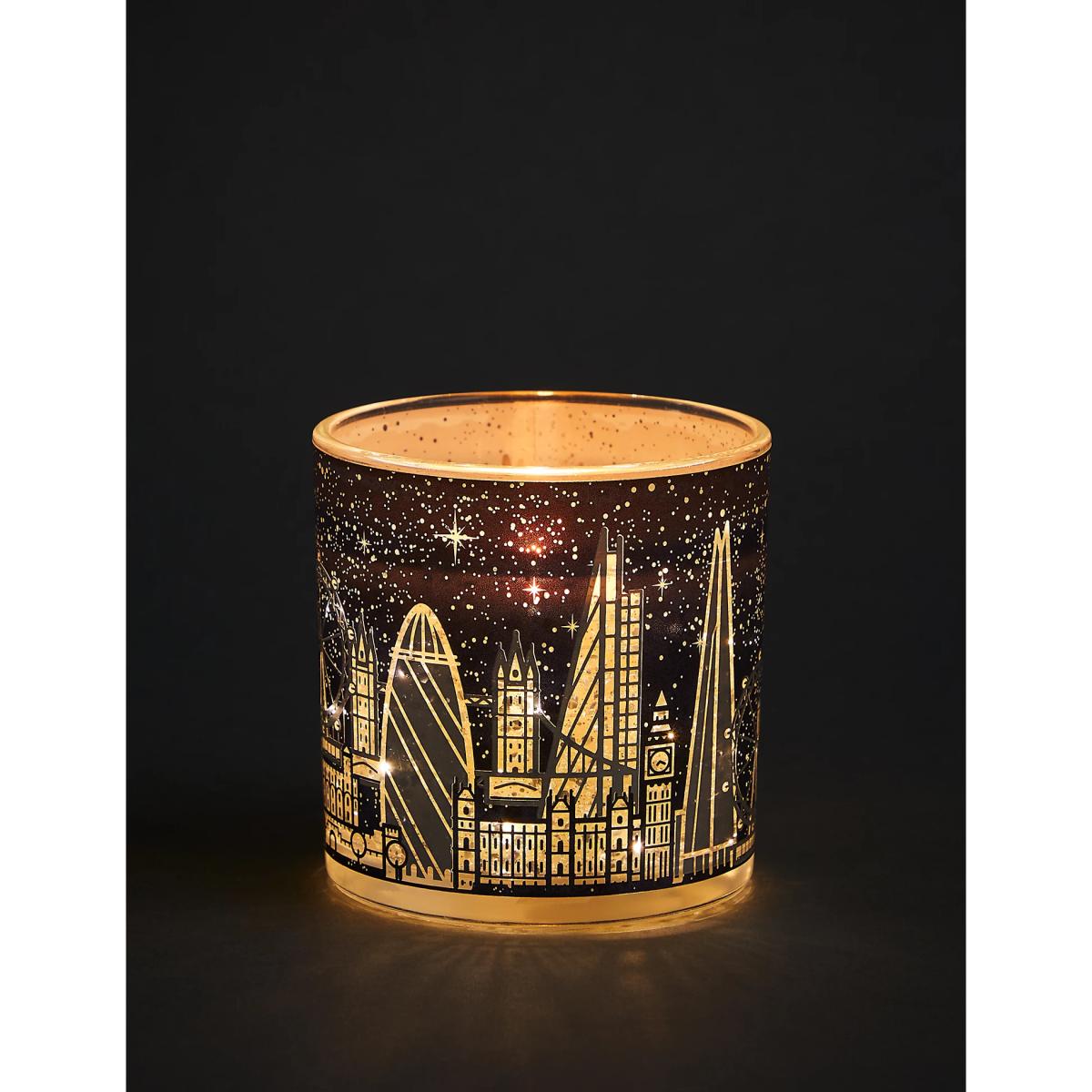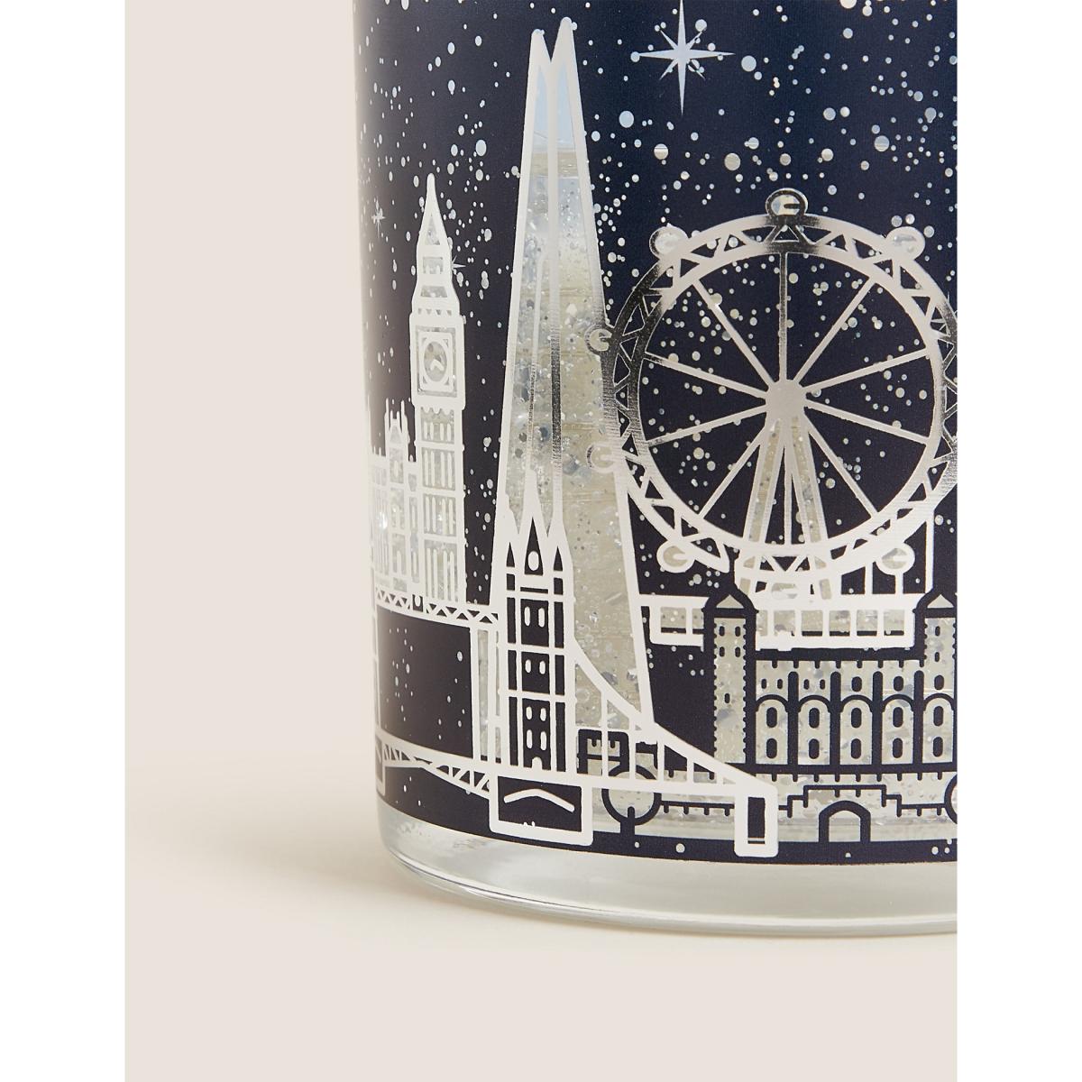 Create a relaxing ambience in your home with this glass light-up candle. It's decorated with a stunning London skyline that lights up when the wick is lit, and is finished with shimmering glitter for a magical look. This medium-sized candle is infused with neroli, lime and bergamot for an invigorating fragrance. This fragrance is part of the Herbal family of fragrances. Herbal scents are often considered to have soothing and relaxing qualities and may contain notes such as lavender, cedar wood, vetiver or eucalyptus.