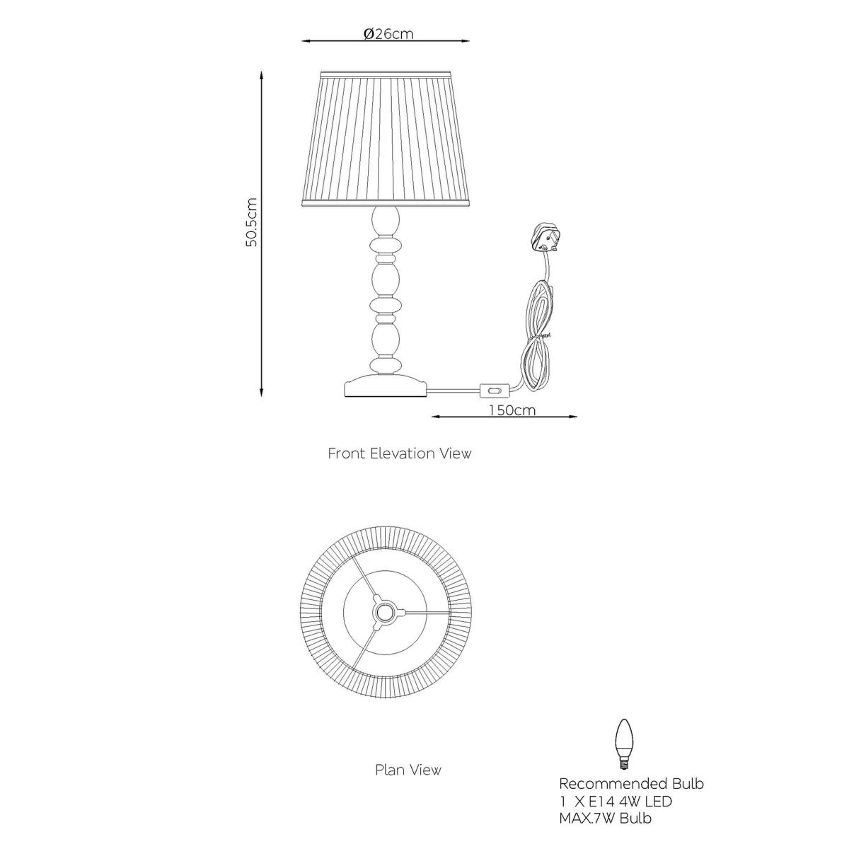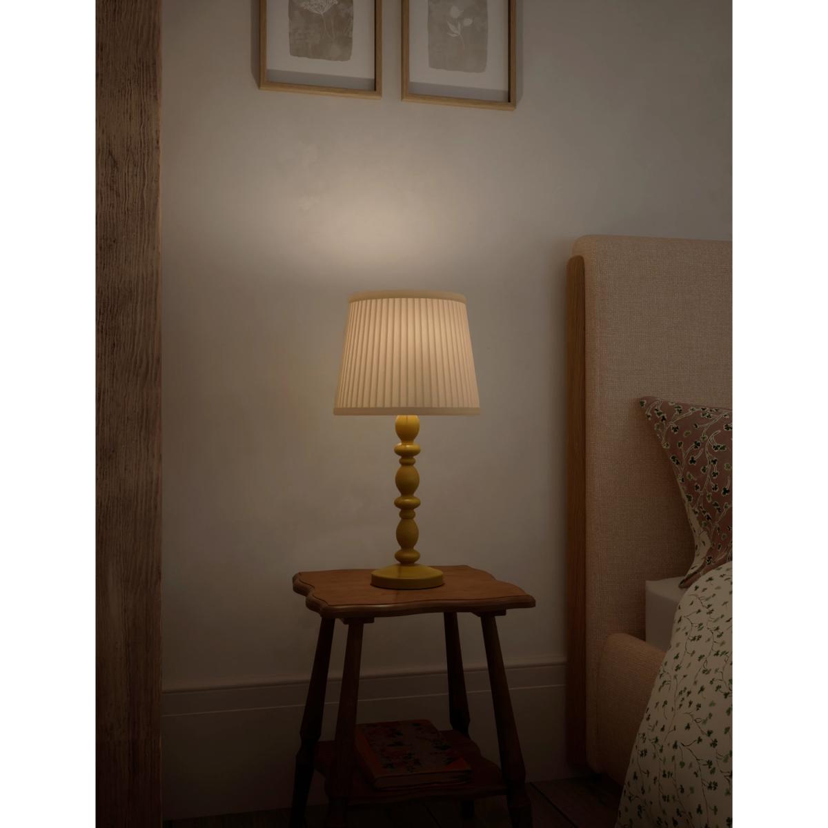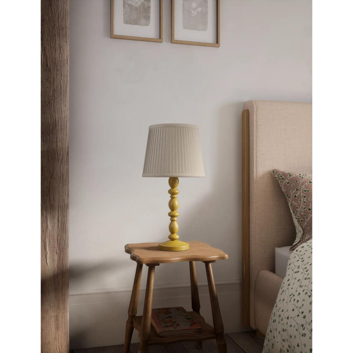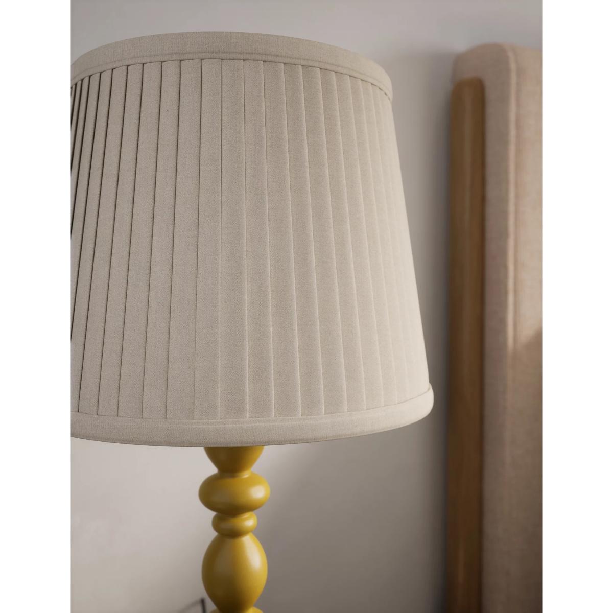 Add extra illumination to your room with the Lotty table lamp. Its turned wooden base gives a traditional look, while the pleated shade gently diffuses the light. A generous cable length makes this piece easy to place where you like.
