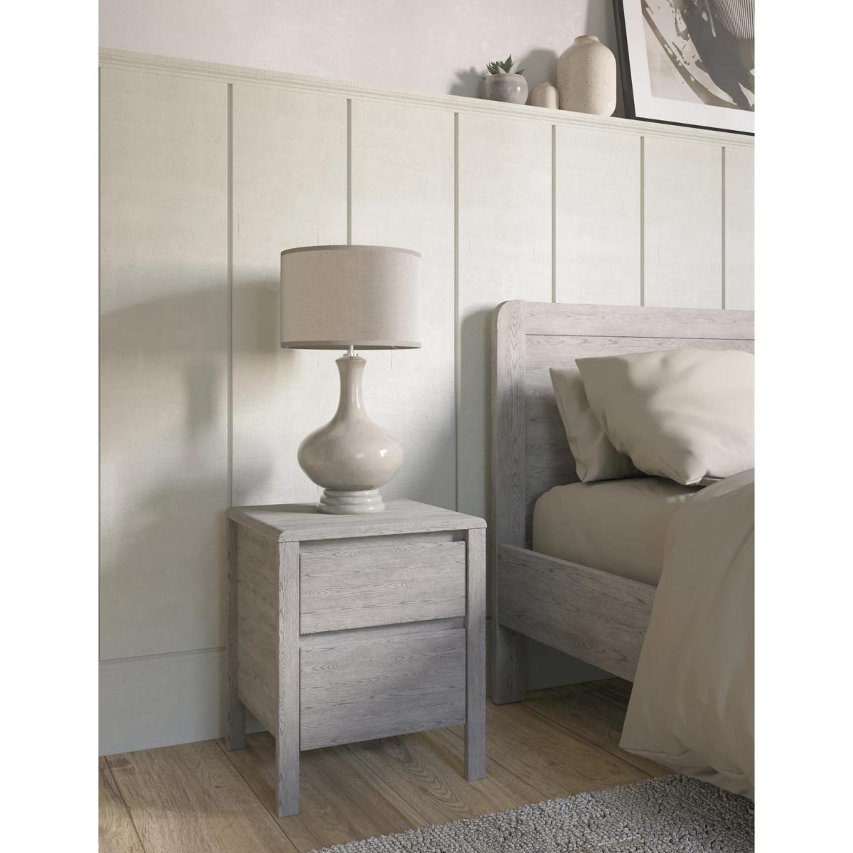 Add extra storage to your bedroom, with this two-drawer bedside table from the Loxton range. It's made with a smaller drawer above and a deeper one below – both mounted on slick metal runners. The top provides a handy spot for a lamp and favourite trinkets. Minimalist groove handles ensure a contemporary feel. Matching pieces are available. We’re so confident our furniture is built to last, our industry-leading guarantee covers any manufacturing failure on all furniture. That’s our promise, and why our furniture comes with a 10-year guarantee that you can trust. Excludes: outdoor furniture and any issues that are a result of normal wear and tear, improper care or accidental damage.