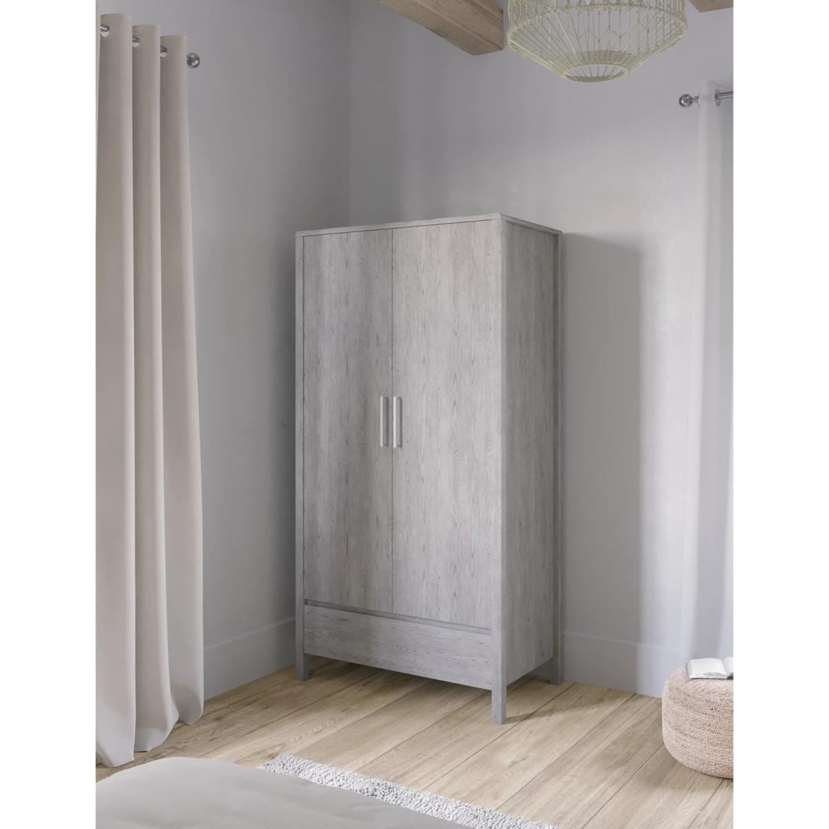 Clean lines and minimal detailing give this Loxton wardrobe a contemporary vibe. This double-door design has plenty of storage room and a rail inside as well as a drawer at the bottom. Smooth curved edges deliver a soft look, while slimline chrome handles complement its ash wood effect. We’re so confident our furniture is built to last, our industry-leading guarantee covers any manufacturing failure on all furniture. That’s our promise, and why our furniture comes with a 10-year guarantee that you can trust. Excludes: outdoor furniture and any issues that are a result of normal wear and tear, improper care or accidental damage.