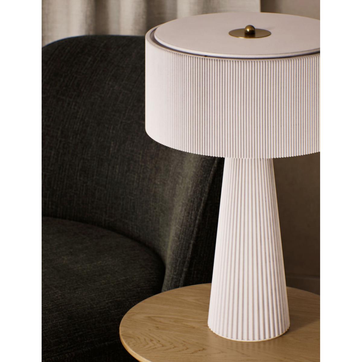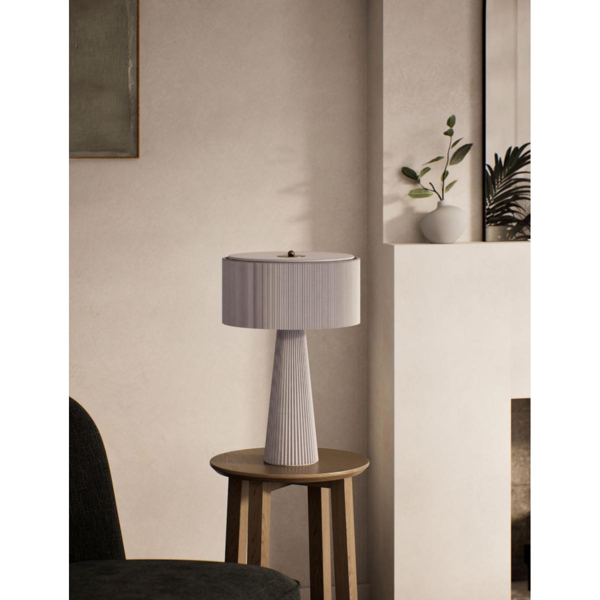 Complete your interior in contemporary style with this Luca paper table lamp. This elegant design pairs a timeless drum-shaped shade with a tapered base. Both pieces are textured for a modern finishing touch.