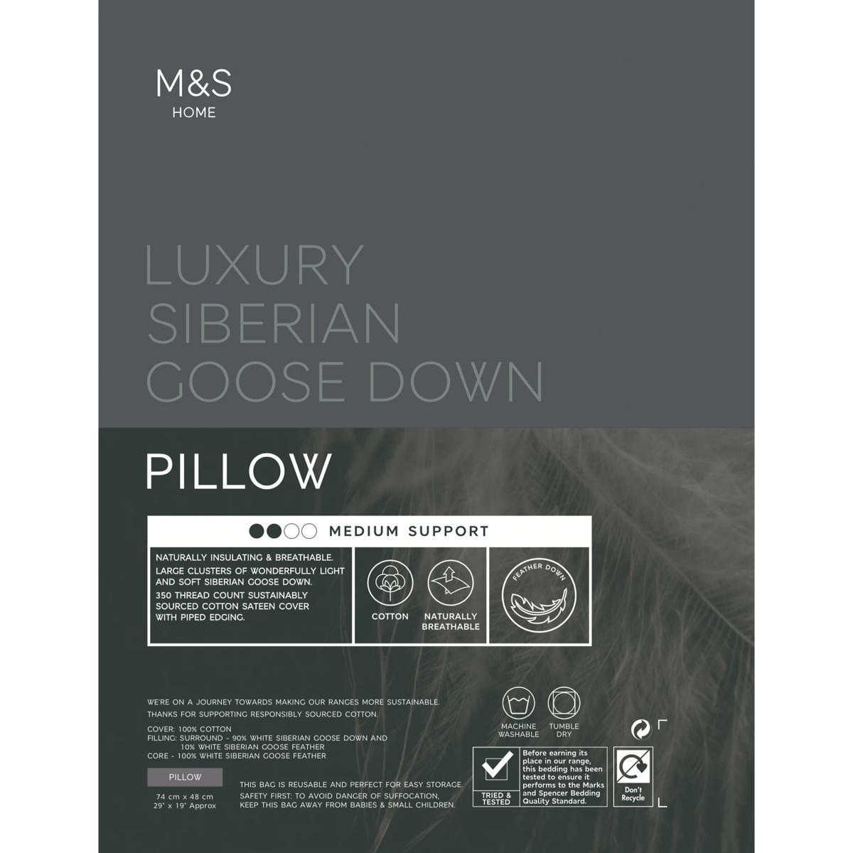 M&S Luxury Siberian Goose Down Medium Pillow - White, White