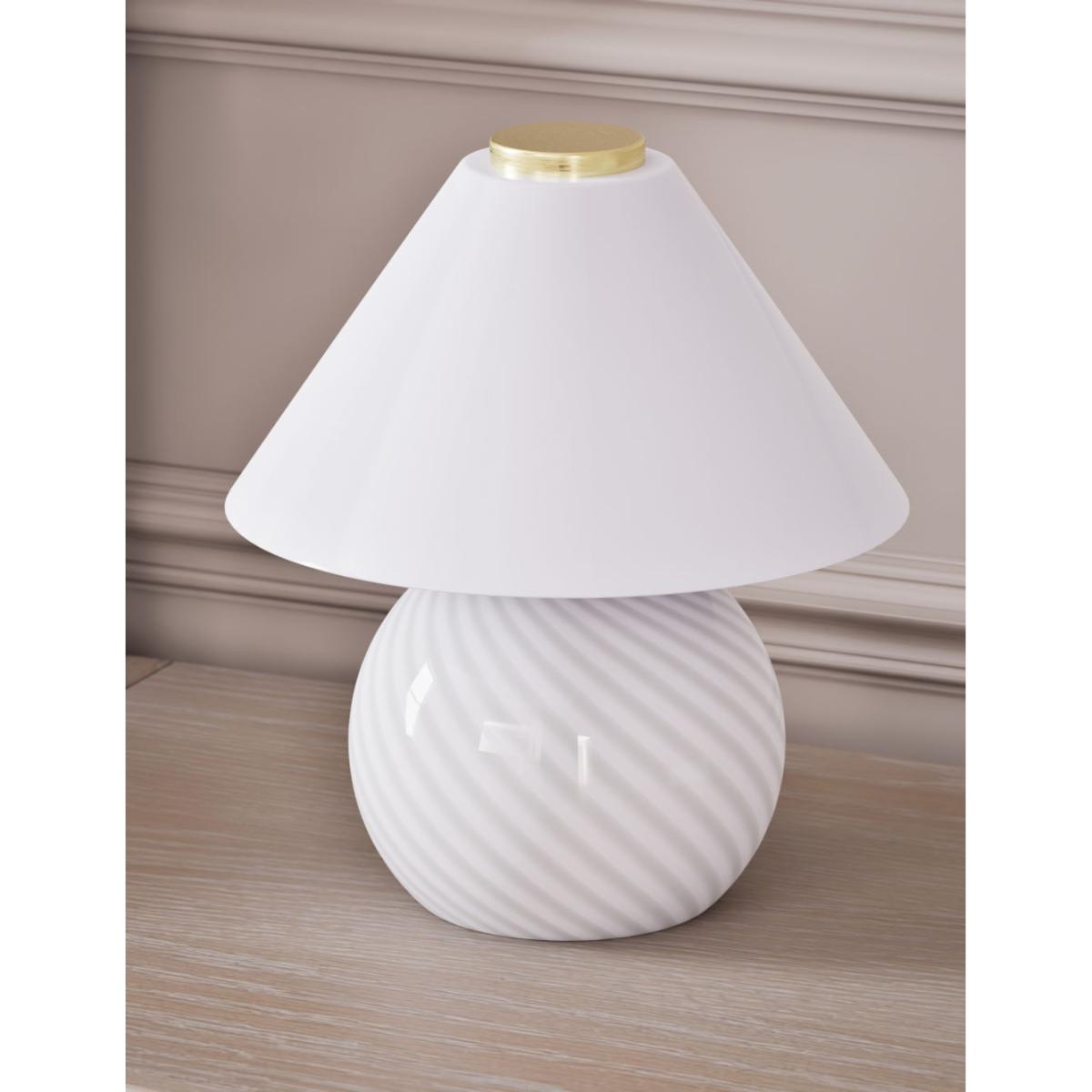 This stylish Lyla table lamp is ideal for lighting smaller spaces. The elegant bulb-shaped base is crafted from glass with a diagonal striped pattern. A fabric tapered shade completes the design.