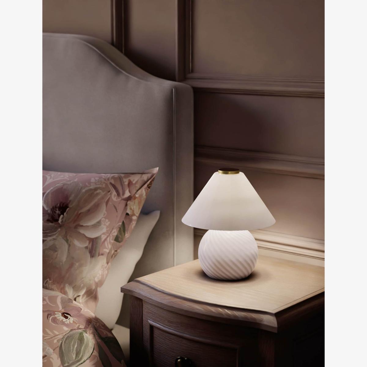The M&S Lyla striped table lamp is a sleek, versatile piece that works well in both contemporary and classic interiors. I love its clean white finish and subtle striped detailing, which add visual interest without overwhelming the space. It’s perfect for bedside tables or living room side tables, where its compact form offers a soft, diffused light-ideal for creating a relaxing atmosphere. For styling tips, consider pairing it with neutral textiles and layered textures, such as a cosy throw or textured cushions, to bring warmth to a minimalist scheme. Its understated elegance makes it a reliable choice for adding subtle sophistication and ambient lighting to a variety of interiors.