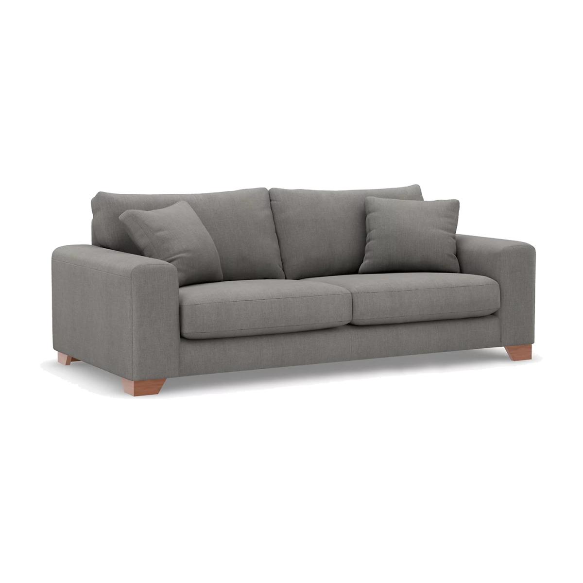 I love this sofa for its clean, timeless design that works well in both modern and more classic interiors. Its substantial size makes it perfect for larger living spaces or open-plan rooms, offering plenty of seating for family and guests. The neutral grey tone makes it versatile, easy to style with colourful or textured accessories, such as patterned cushions or throws. Practical styling tips include pairing it with a mix of soft, cosy cushions to add comfort and visual interest, and placing a statement rug underneath to anchor the space. It also works well with both wooden and metal accents, so you can tailor the look to your overall scheme. Overall, this piece lends itself to a flexible, welcoming vibe, whether styled minimalistically or layered with eclectic accessories.