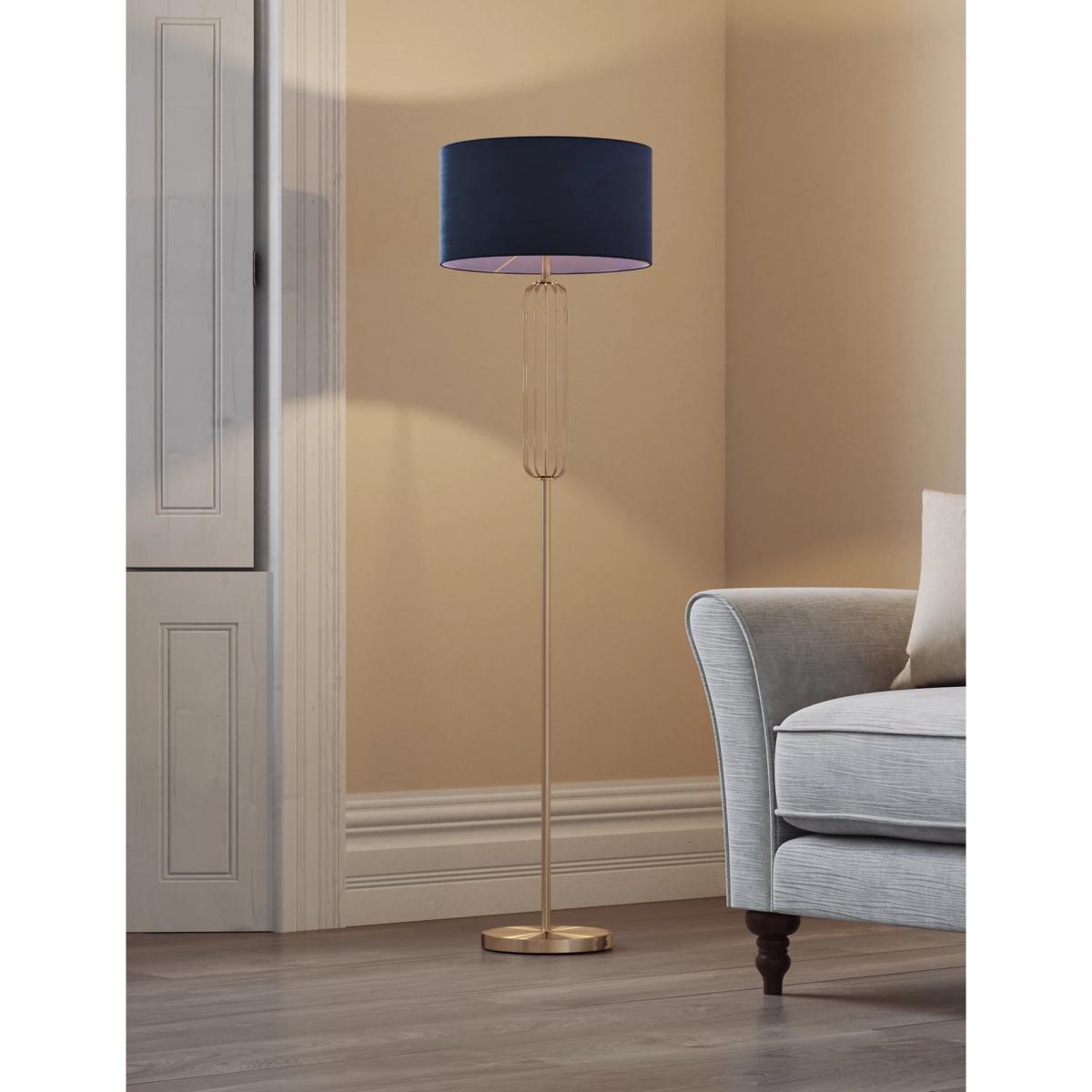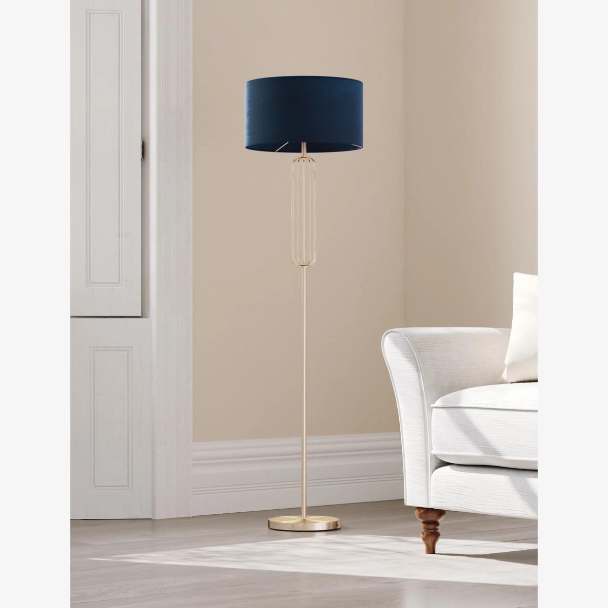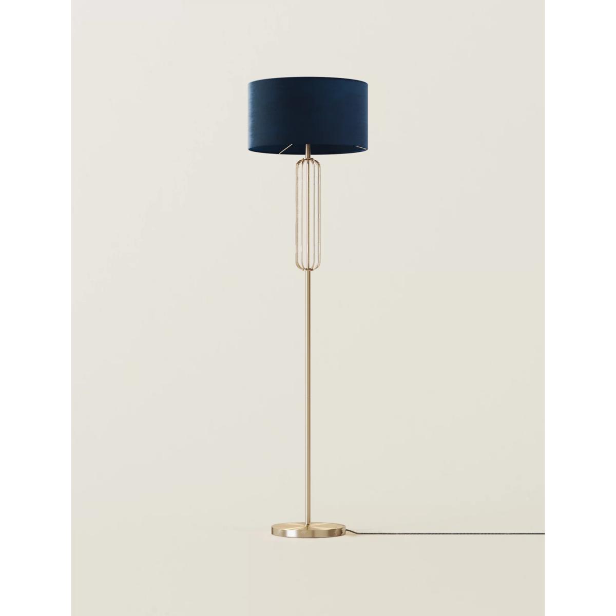 This opulent Madrid floor lamp brings a luxe and contemporary feel to any interior. Its elegant stem is adorned with a curved oblong cage, and topped with a velvet shade.