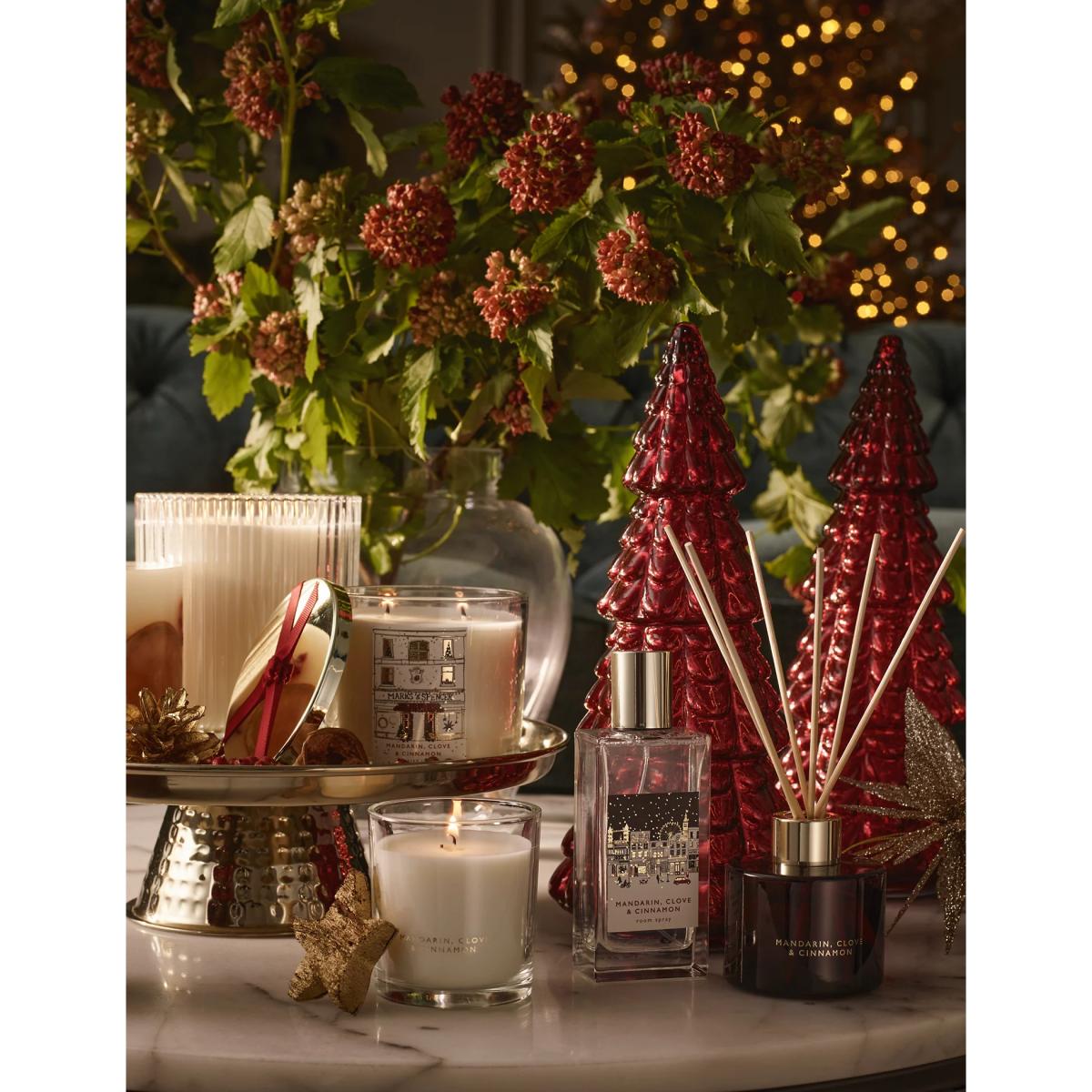 Add a festive finishing touch to your room with this scented jar candle. Its fragrance combines zesty mandarin with sweet clove and warming cinnamon, for a gorgeously Christmassy scent. Your candle is presented in a tapered glass vessel that creates a welcoming glow when lit. This fragrance is part of the Amber family of fragrances. Amber scents are rich and warming and may contain notes such as vanilla, pepper, tonka bean and amber.