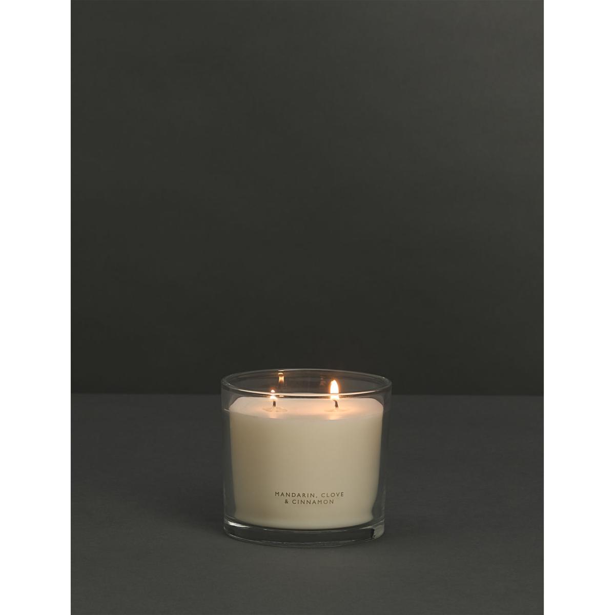 Fill your home with festive scents with our medium wax candle. With notes of warm cinnamon, clove and zesty mandarin, this lovely candle is perfect for creating a cosy ambience. It comes in a stylish glass holder with a smart golden lid that looks great out on display.