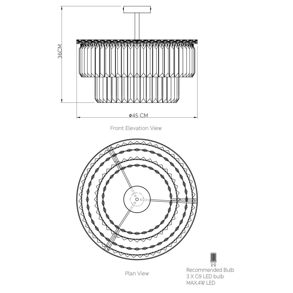 Vogue Dewey Chrome 3 Light Flush Ceiling Fitting Chrome