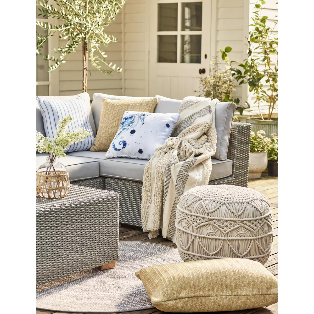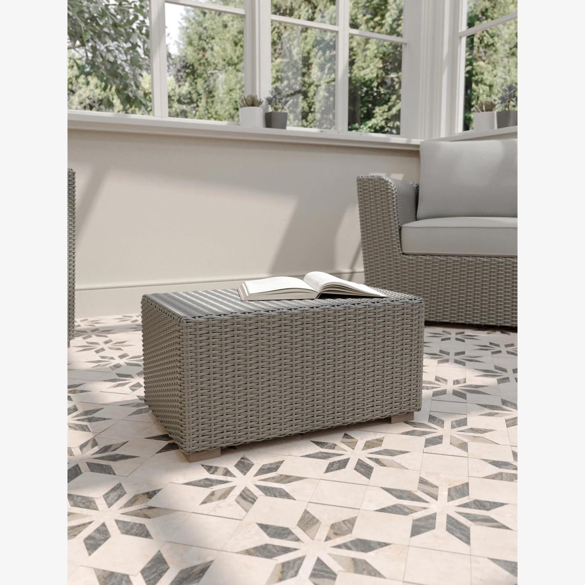 I love this Marlow rattan effect coffee table for its versatility and timeless appeal. It's perfect for outdoor or conservatory settings, especially in contemporary or coastal-style interiors thanks to its grey finish and woven texture. It works well paired with both natural fibres and modern materials, adding visual interest without overwhelming the space. Practical styling tips include using it as a base for colourful outdoor cushions, potted plants, or a tray with candles and drinks for casual gatherings. Its compact size also makes it ideal for smaller patios or sunrooms where you want a functional piece that blends seamlessly with relaxed, effortless decor.
