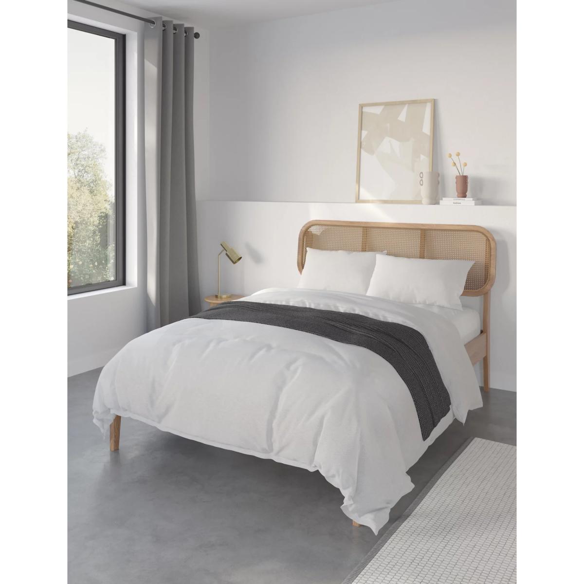 Make a statement with this vintage-inspired bed from the Maya Cane furniture collection. It's made from smooth ash wood with ash veneer and a unique rattan panelled headboard. Tall, sturdy legs complete the design. The frame is easy to clean and assemble. Made from responsibly sourced wood. We’re so confident our furniture is built to last, our industry-leading guarantee covers any manufacturing failure on all furniture. That’s our promise, and why our furniture comes with a 10-year guarantee that you can trust. Excludes: outdoor furniture and any issues that are a result of normal wear and tear, improper care or accidental damage.