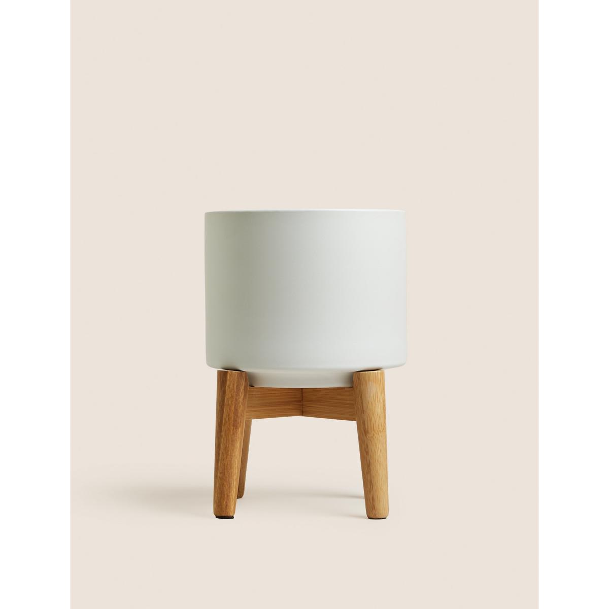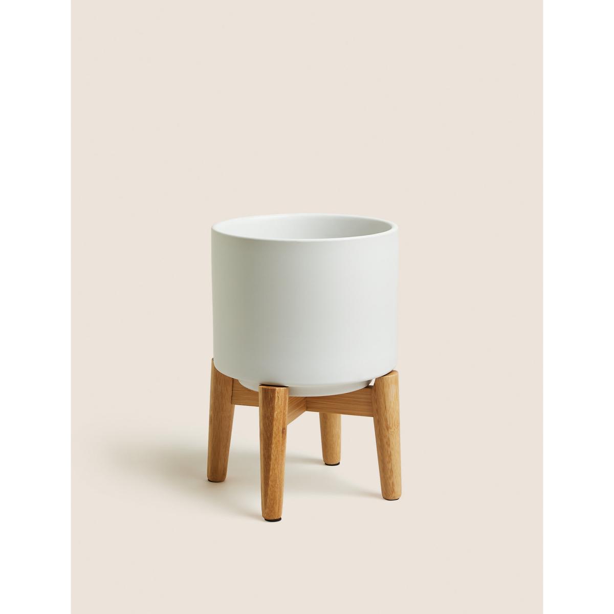 This contemporary, medium-sized planter will look as stylish in your kitchen as it will on your terrace. The pot is made from ceramic to help stimulate your plants' root growth, and the classic wooden legs create a little extra height for display.