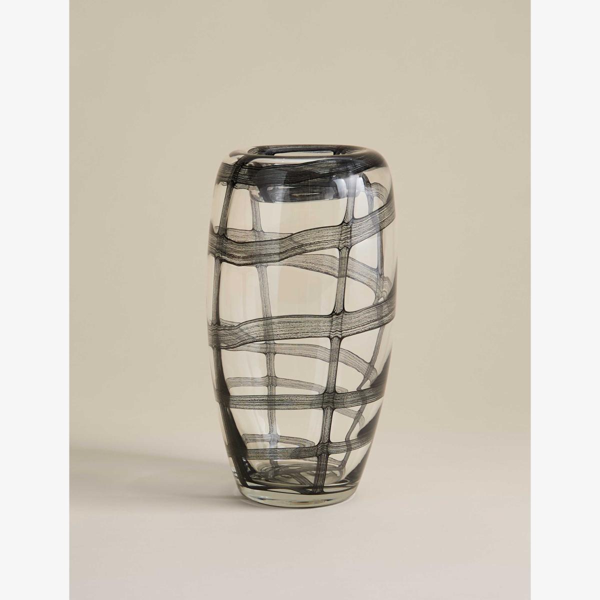 Add a touch of artistic charm to your space with the Medium Check Glass Vase. Featuring a bold, oversized check pattern that mimics the expressive strokes of a paintbrush.