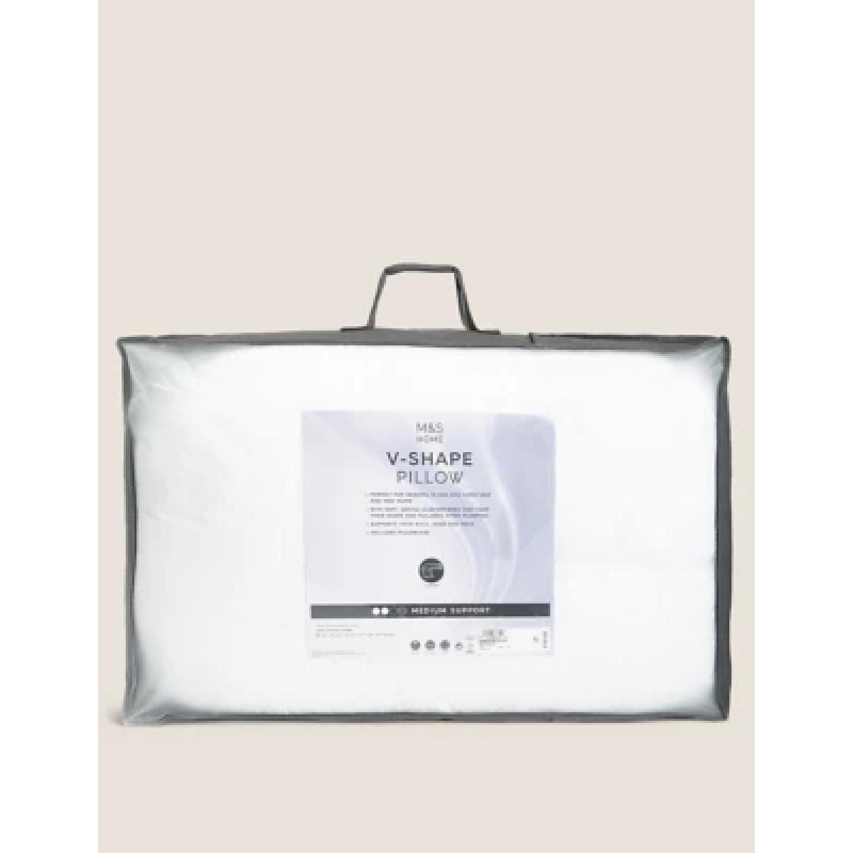 M&S Medium V-Shaped Pillow with Pillowcase - White, White
