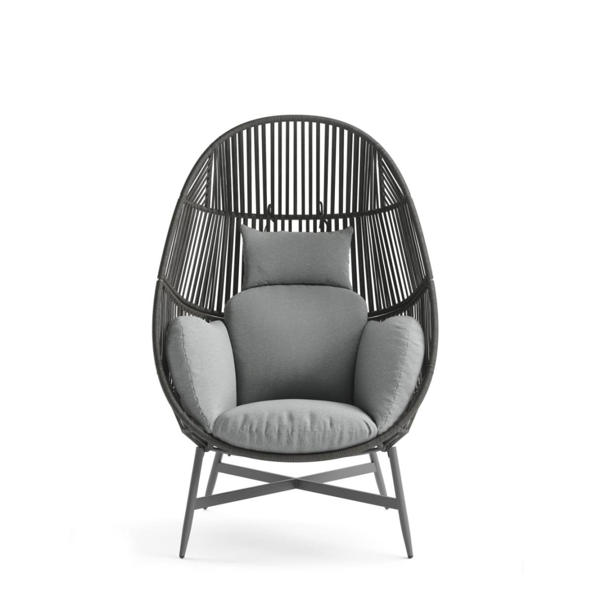 Bring extra comfort to your outside lounging space with the Melbourne garden chair. It's made in a striking egg shape, from all-weather rope and painted metal that ensure durability. This piece comes complete with removable outdoor cushions. Coordinating pieces from the Melbourne range are available.
