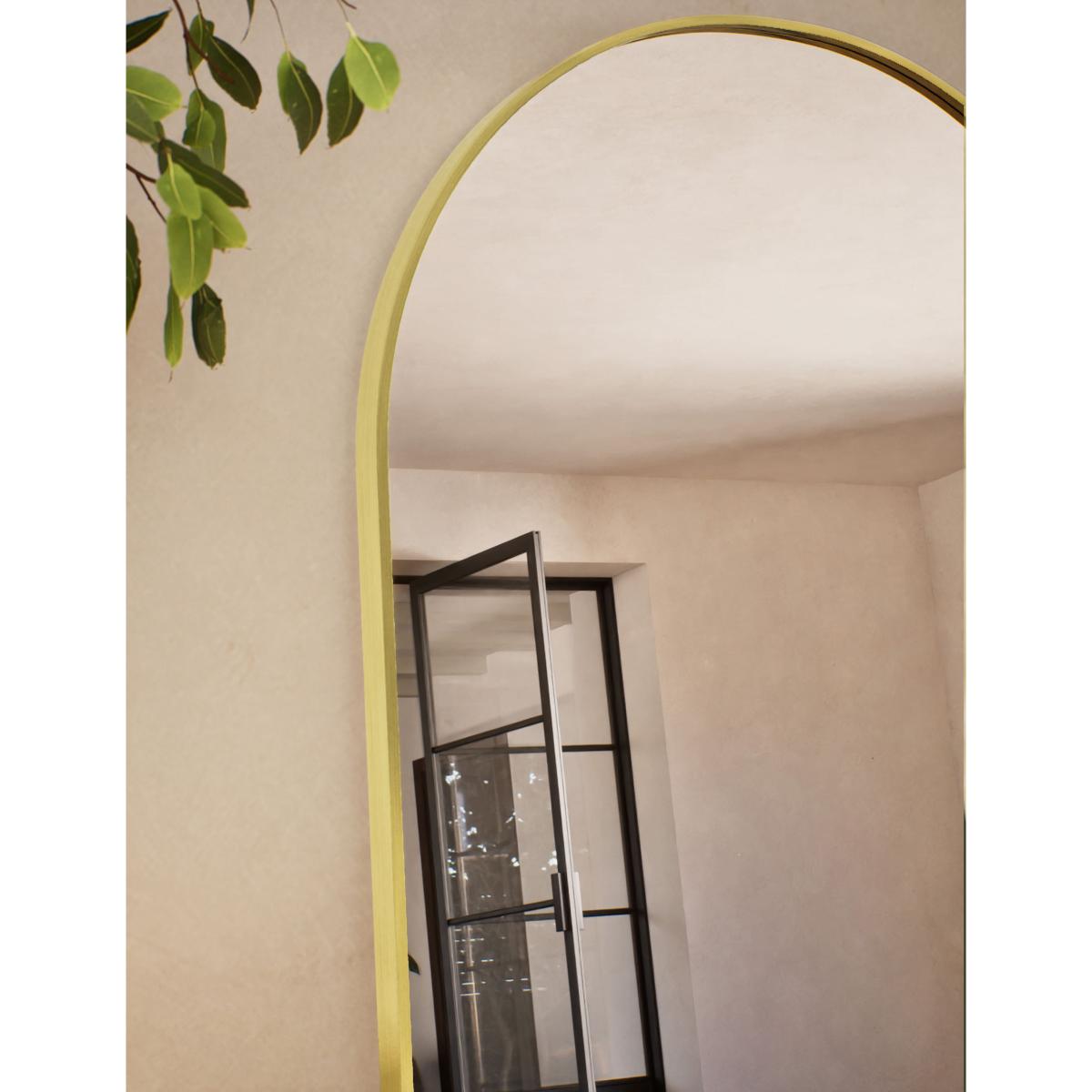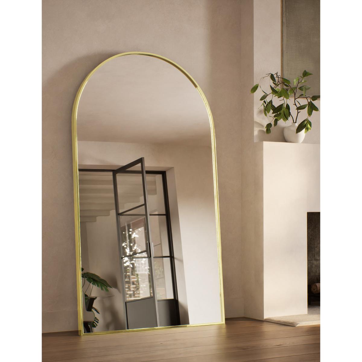 Sleek curving lines lend an elegant look to this arch-shaped mirror. This free-standing piece will bring a statement feel to your interior, and is complete with a slim, gold-tone metal frame.