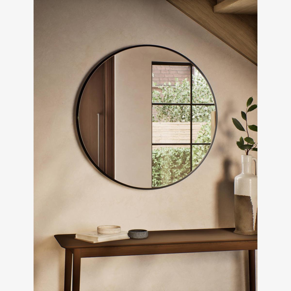 I really like this metal circle wall mirror because of its versatile design and subtle colour options. It works well in both contemporary and industrial-inspired interiors, adding a sleek and modern touch without overpowering the space. I’d suggest pairing it with warm woods or textured finishes to create a balanced look. Practical styling tips include hanging it above a console or sideboard to reflect light and make a space feel larger, or as a standalone statement piece in an entryway. Its circular shape also provides a softer contrast in rooms with angular furniture, making it a flexible choice for various styles.