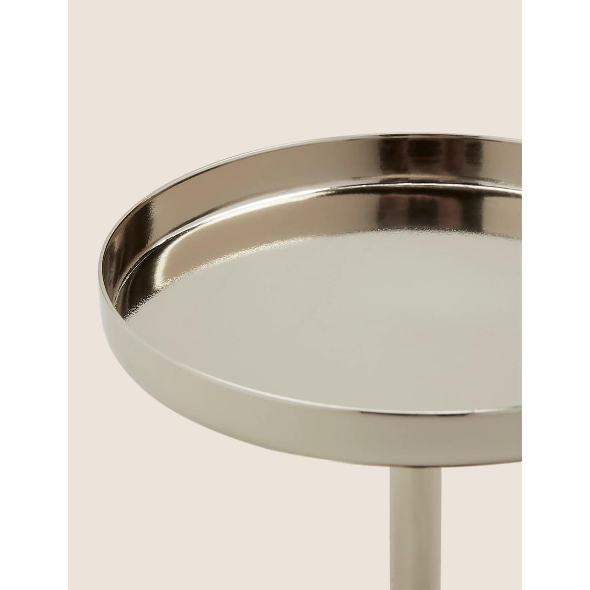 Add some elegant style to your interior with this chic pillar candle holder. This medium-sized piece is crafted from shiny metal with a circular base and stem.