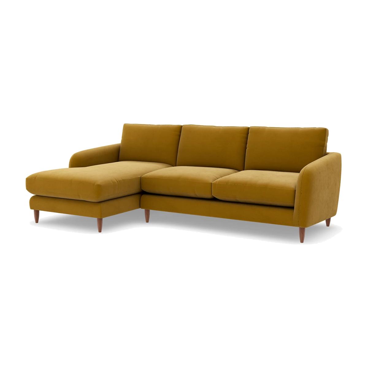 With its sleek shape and soft features, our Mia chaise sofa is the perfect blend of comfort and style. This large design has plenty of space for lounging, with big cushions and extra soft padding in the arms. It has a modern low shape set on smart wooden feet, with extra attention to detail like matching stitching enhancing the premium feel. Best of all, you can choose from over 70 stain-defence fabrics, for a made-to-order sofa that fits perfectly in your space. Modern shape Designed with padded arms for extra support Custom-made for a bespoke finish With removable feet