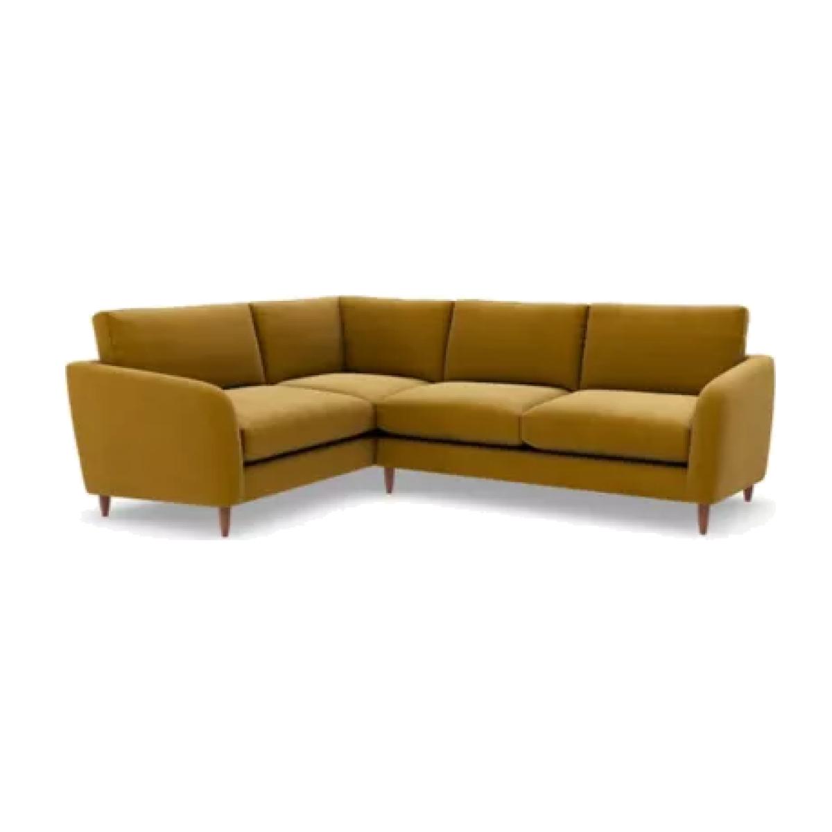 I love this corner sofa for its versatile sizing and cosy, inviting shape, making it ideal for both open-plan living rooms and more contained spaces. Its left-hand design suits layouts where the longer section can anchor the room, creating a natural focal point. The warm mustard tone adds a perennial touch of colour without overwhelming, pairing well with neutral walls and wood accents. For styling, consider layering soft throws and varied cushions to enhance comfort and texture, and keep surrounding decor minimal to allow the sofa to be the star. Its sleek legs lend a modern touch, working well in contemporary interiors, though it can also be styled in eclectic or mid-century schemes with thoughtful accessorising.