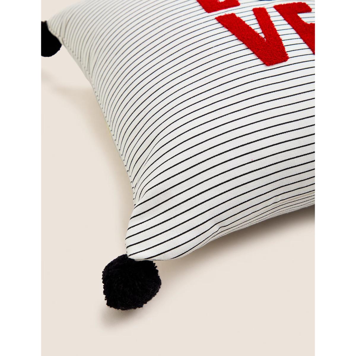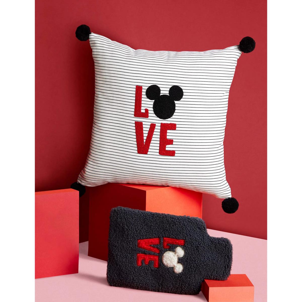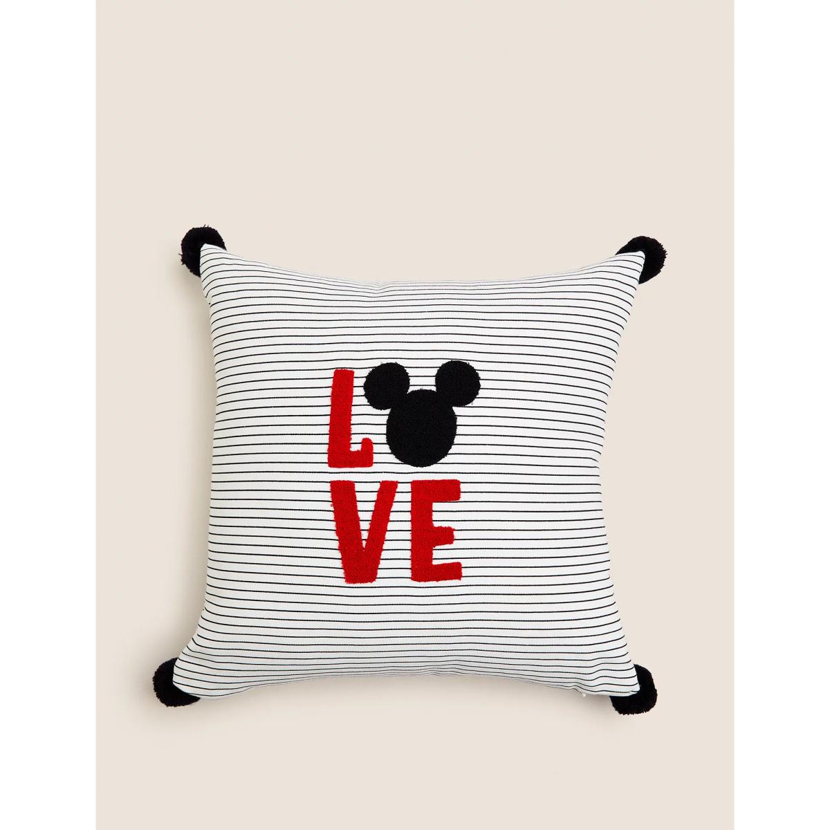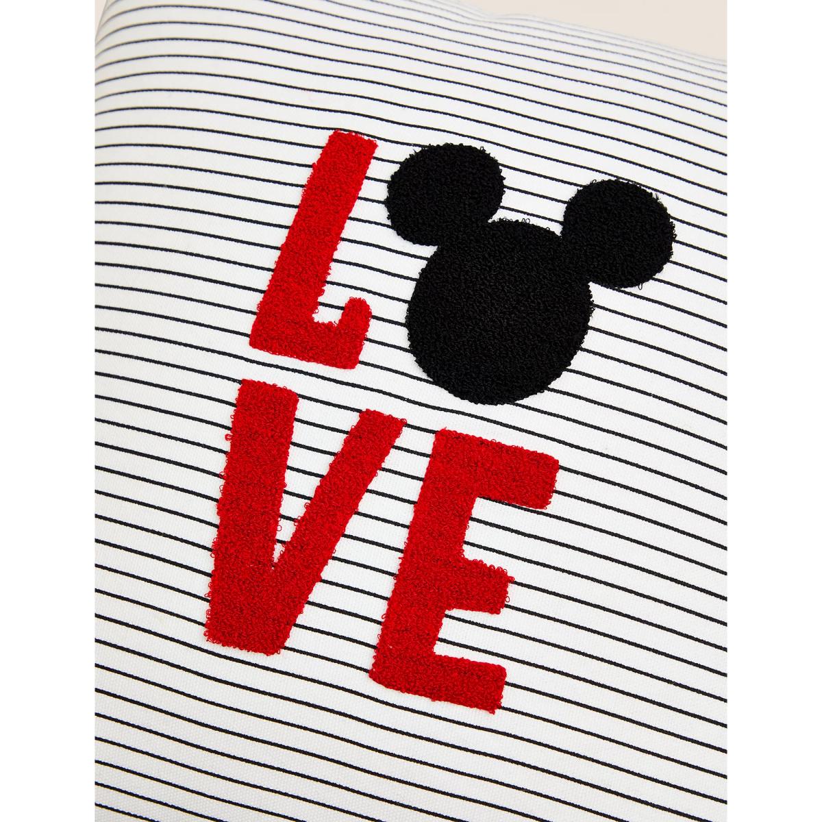Treat your Disney-loving Valentine to this medium-sized Mickey Mouse™ scatter cushion. It has a striped cotton cover, with a 'LOVE' slogan embroidered onto the front, and contrast detailing on the corners.