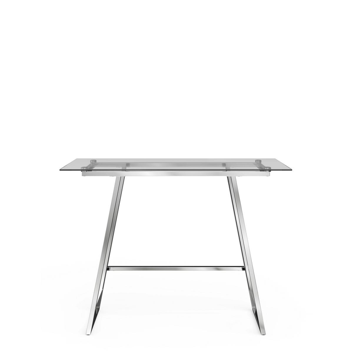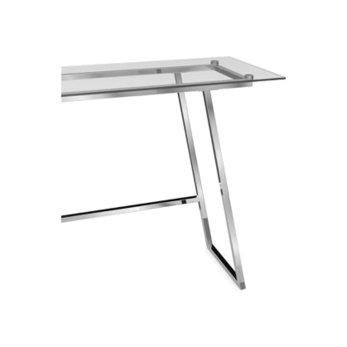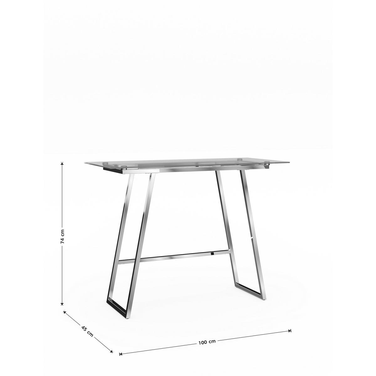Bring contemporary elegance to your workspace with this desk from our Milan range. It features a glass top on polished chrome legs for a sleek, minimalist look. Match it with other furniture from the range for a coordinated look in your home.