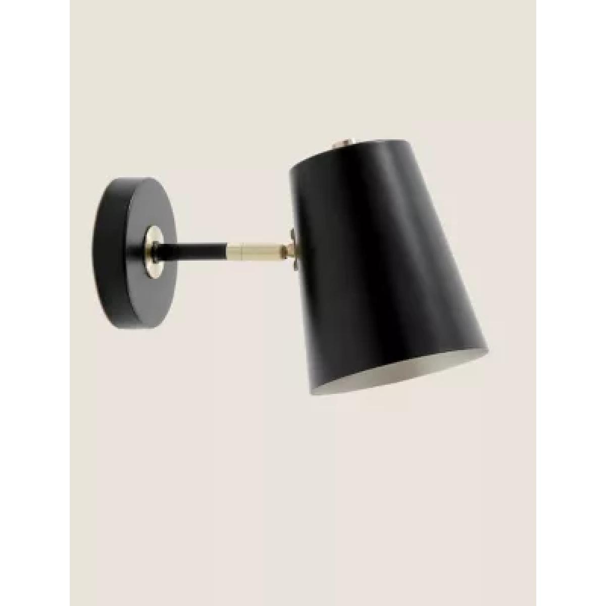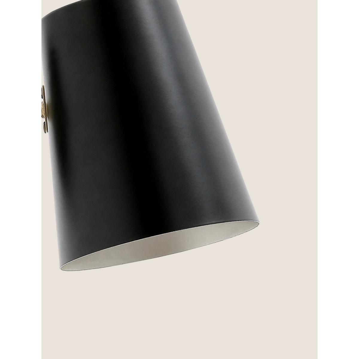 This metal wall light combines a matt black powder coat finish with brass accents to create a classic salvage look. Adjustable arms mean you can move it to cast light where you want. The minimalist design works well in all kinds of interiors.