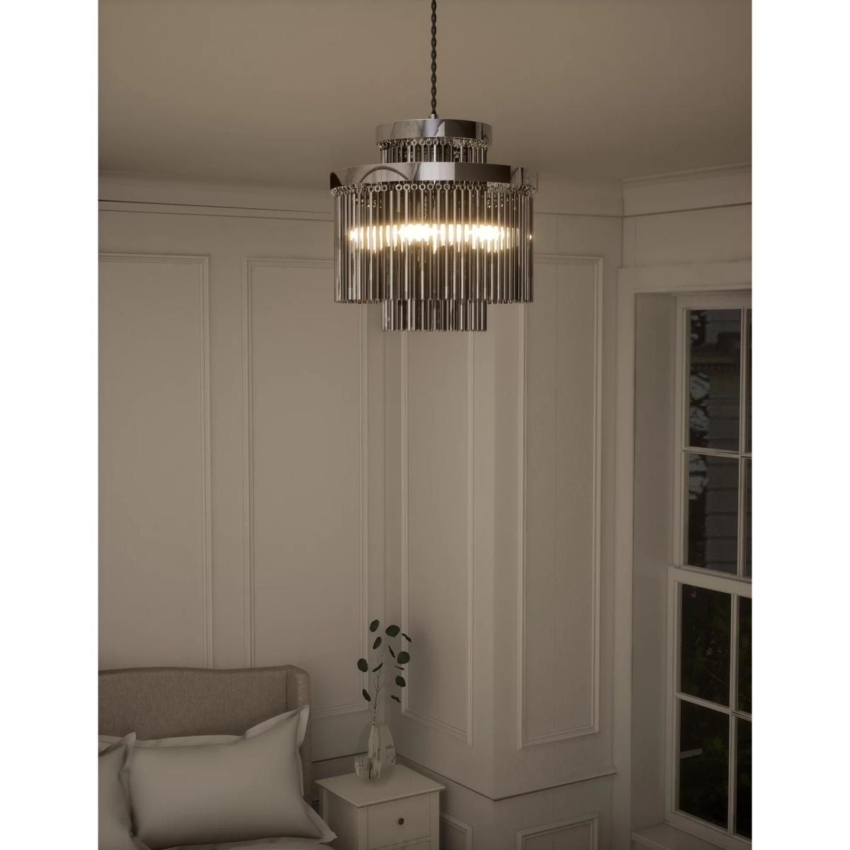 I love this chandelier for its sleek, contemporary look combined with a touch of glamour from the metallic finishes. It works particularly well in modern interiors, especially spaces with a neutral or monochrome palette, where it can act as a statement piece. The silver tone is versatile and pairs nicely with cool-toned metals or colour schemes, while the antique brass adds warmth and a vintage touch. For styling tips, consider hanging it in a dining room or over a kitchen island to create a focal point, or use it in a high-ceilinged living space for a luxe feel. Keep surrounding décor simple to let the chandelier shine, and ensure the height is adjusted for optimal visibility and light distribution.