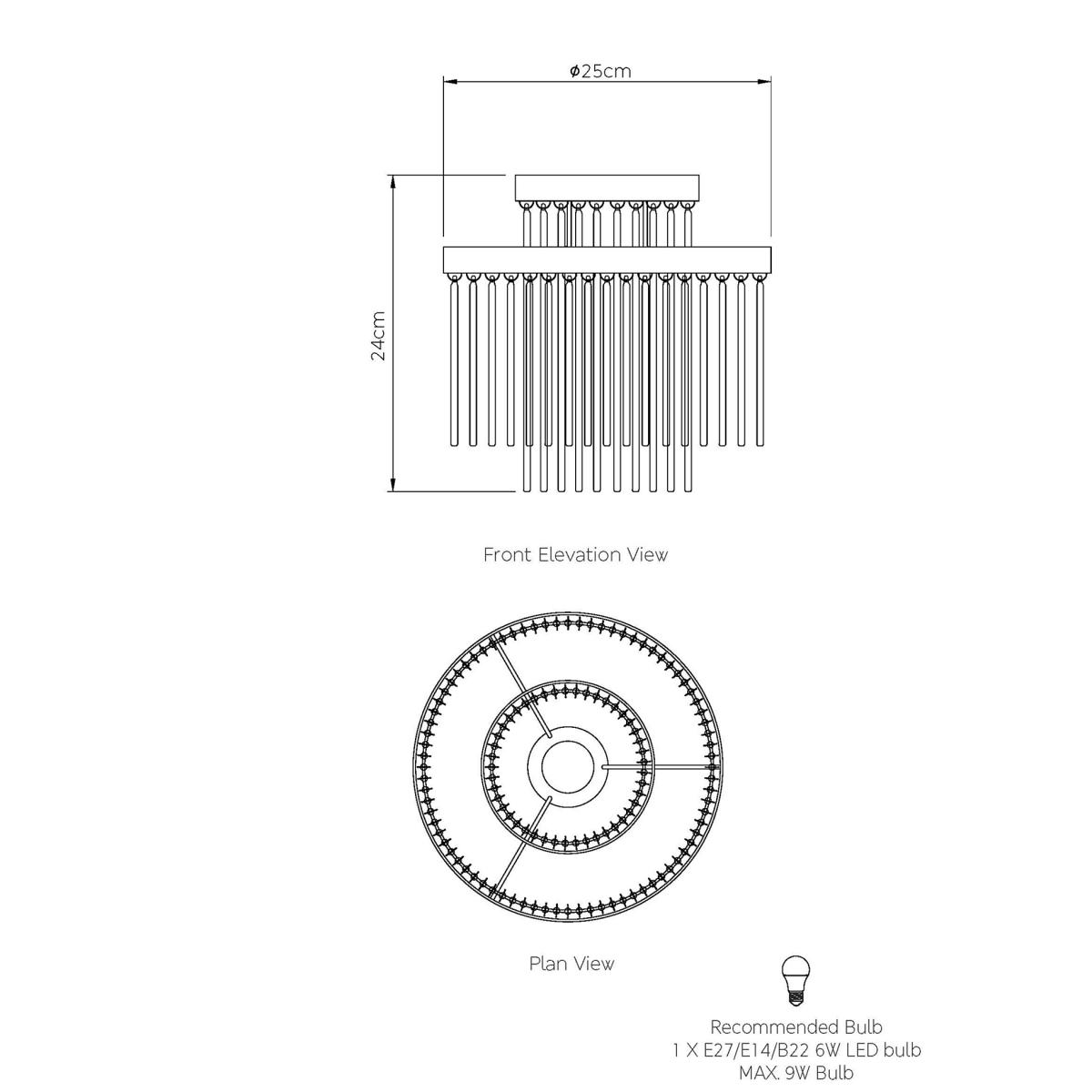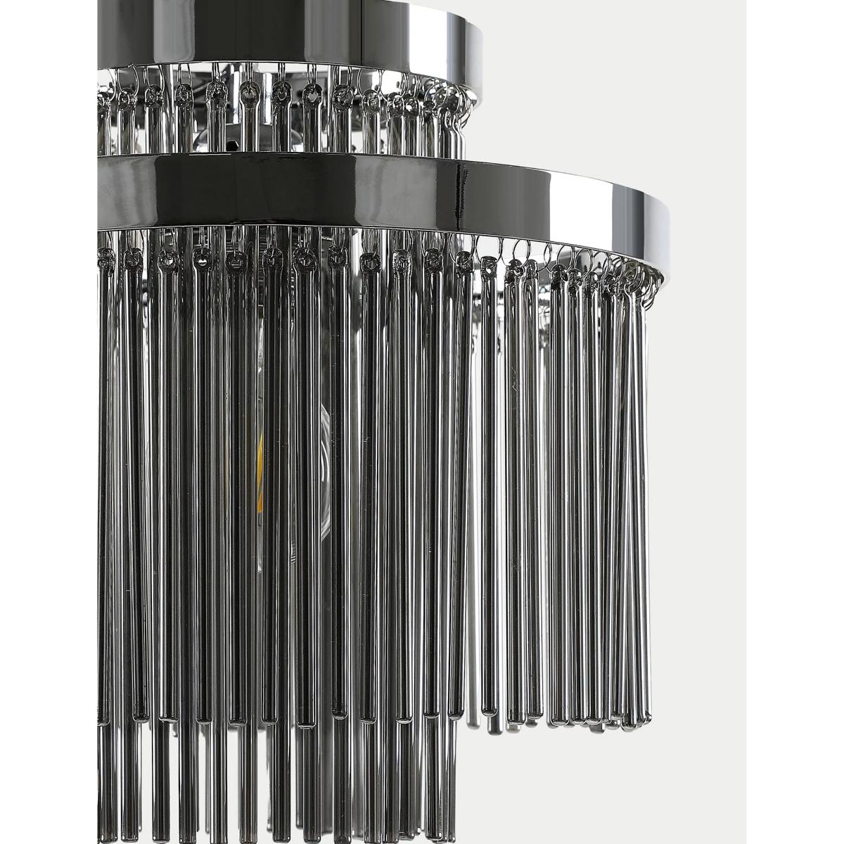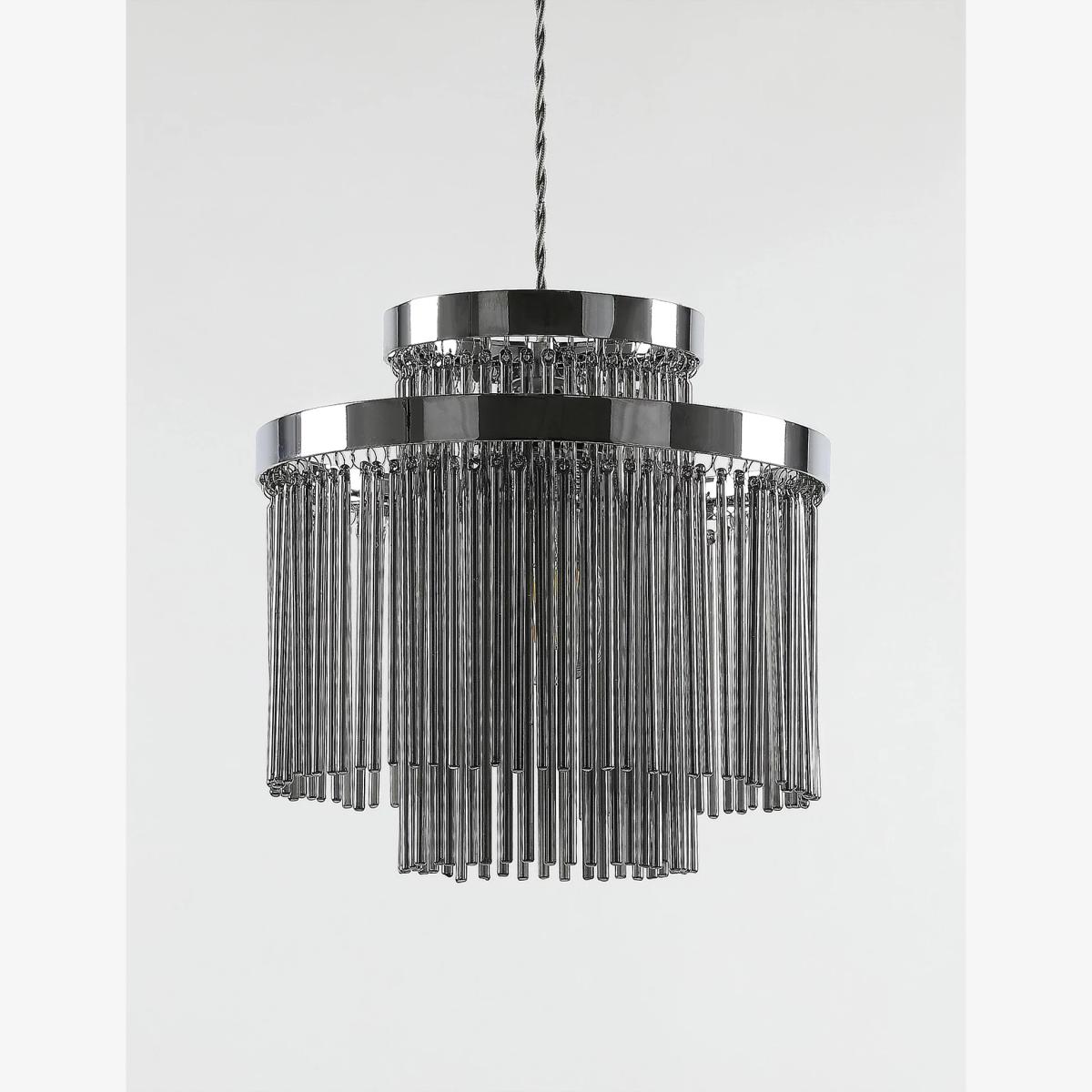 The Monroe ceiling lamp shade has an easy-fit design, so it's simple to place in your room. Its twin-circle shape and metallic frame ensure a sleek and eye-catching look. A fringe of slender glass strands creates a lustrous effect as it captures and refracts the light.