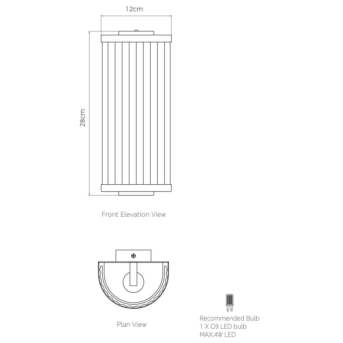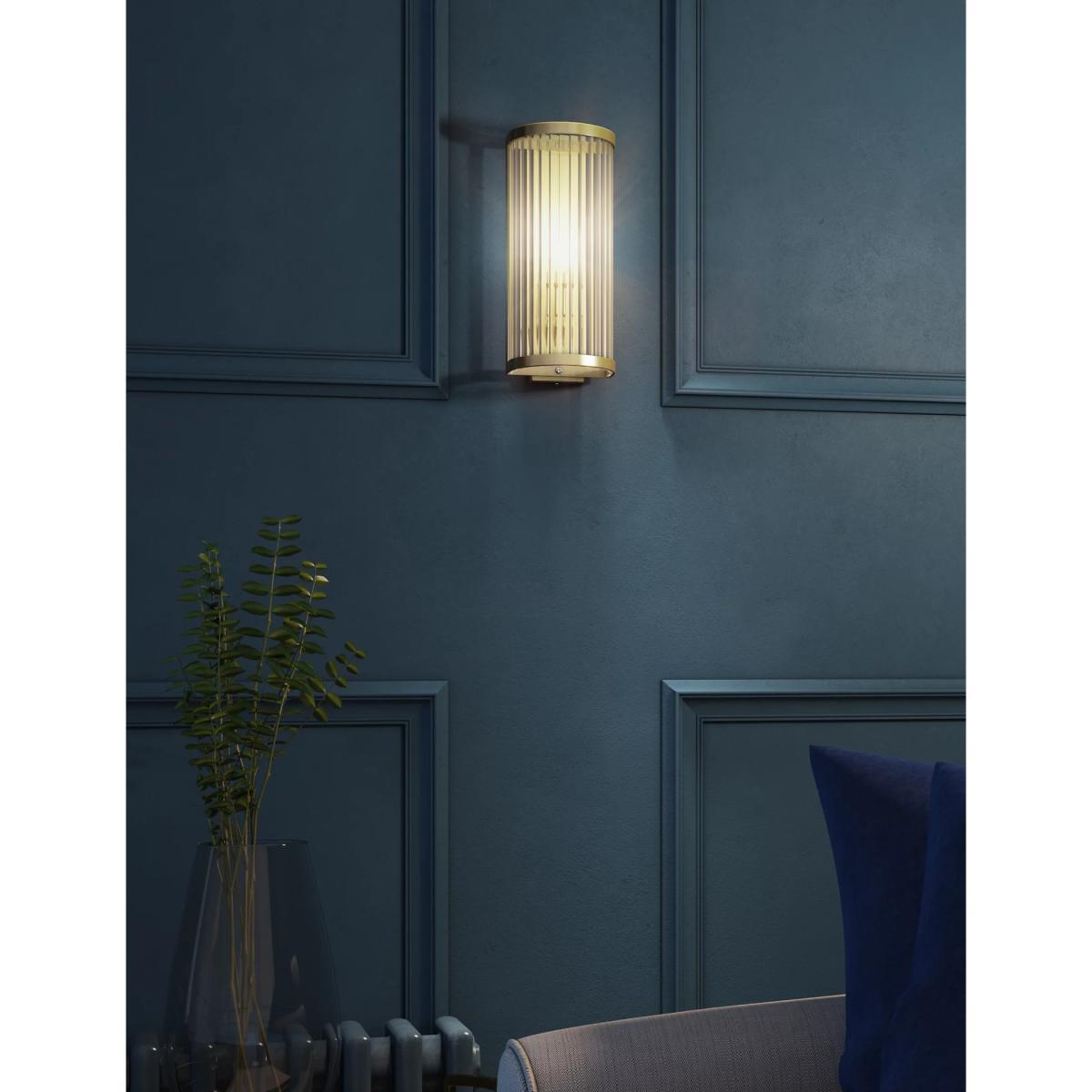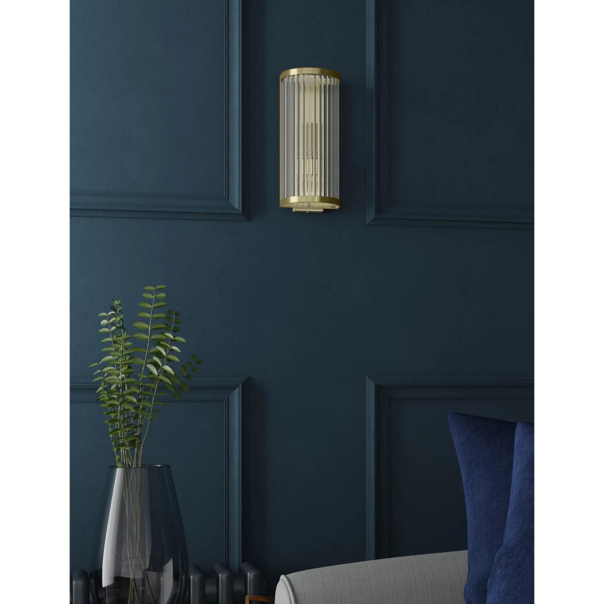 Light up your home with our Monroe wall light, a stunning fixture that'll look great in any space. This elegant design features a curved, ribbed glass front held within a satin brass framework. It sits flush against the wall for a stylish finish, and is IP44 rated for bathroom use.