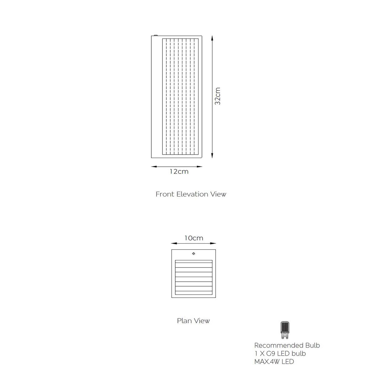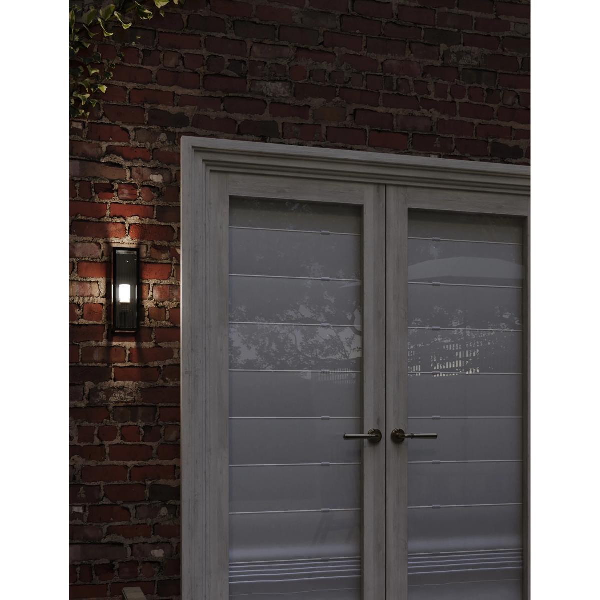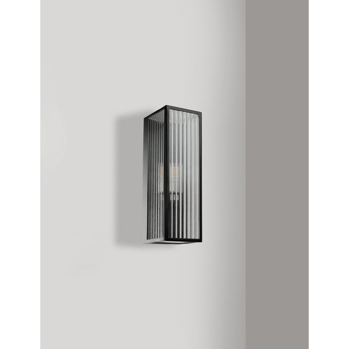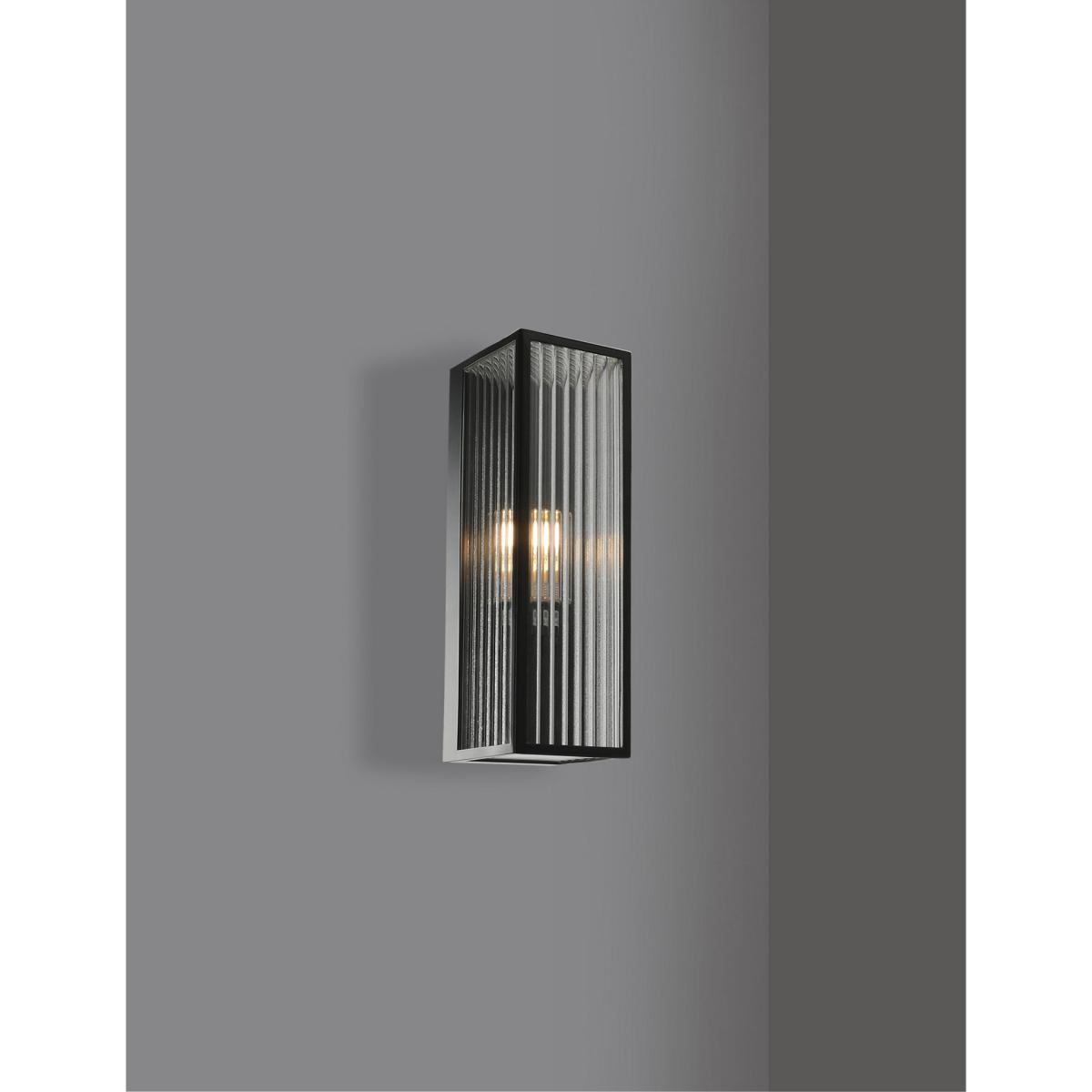 Shed some light on your outdoor space with this rectangular metal and glass wall light. It has a matt black finish with an inner ribbed glass panel which makes for a more decorative light pattern when illuminated. Designed for use with an energy efficient LED light bulb so you can choose the perfect brightness for the outside of your home or garden.