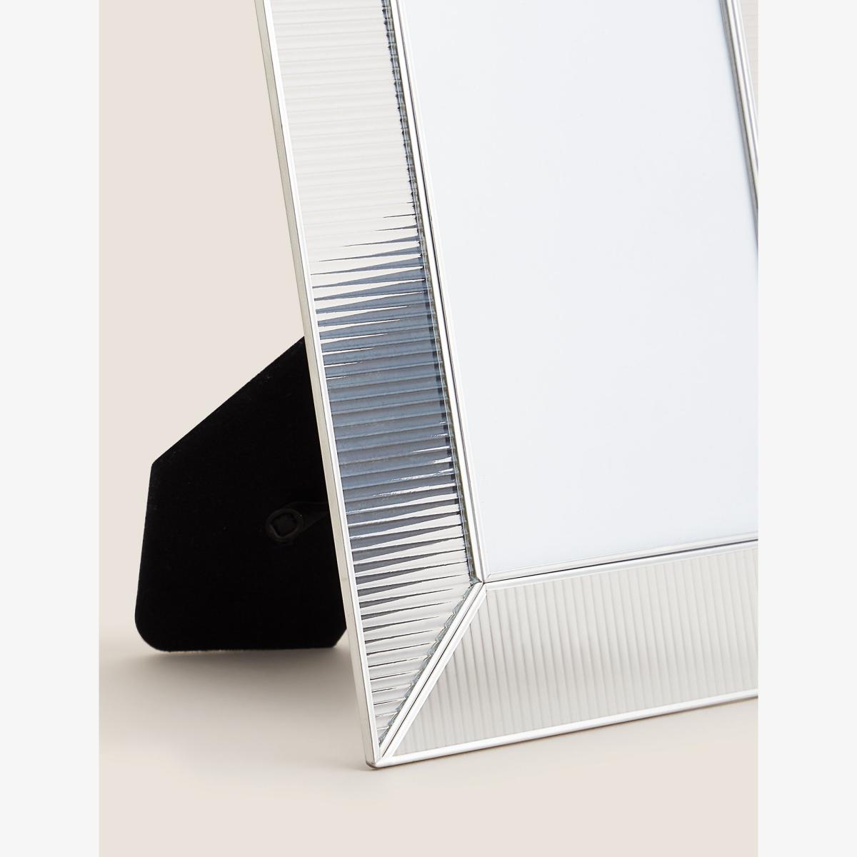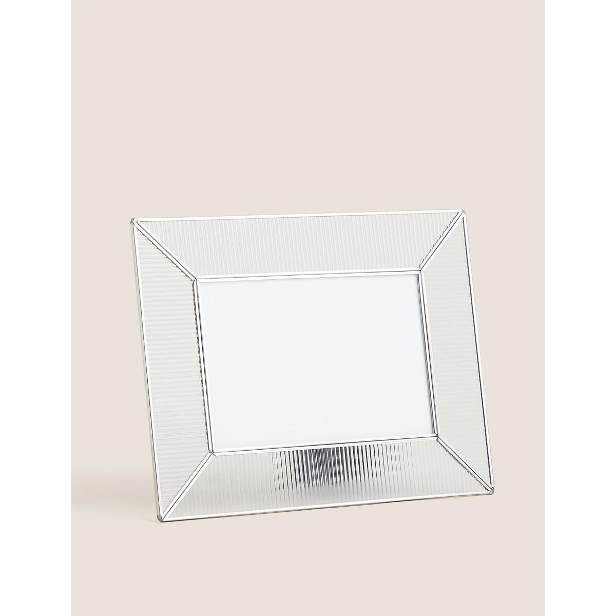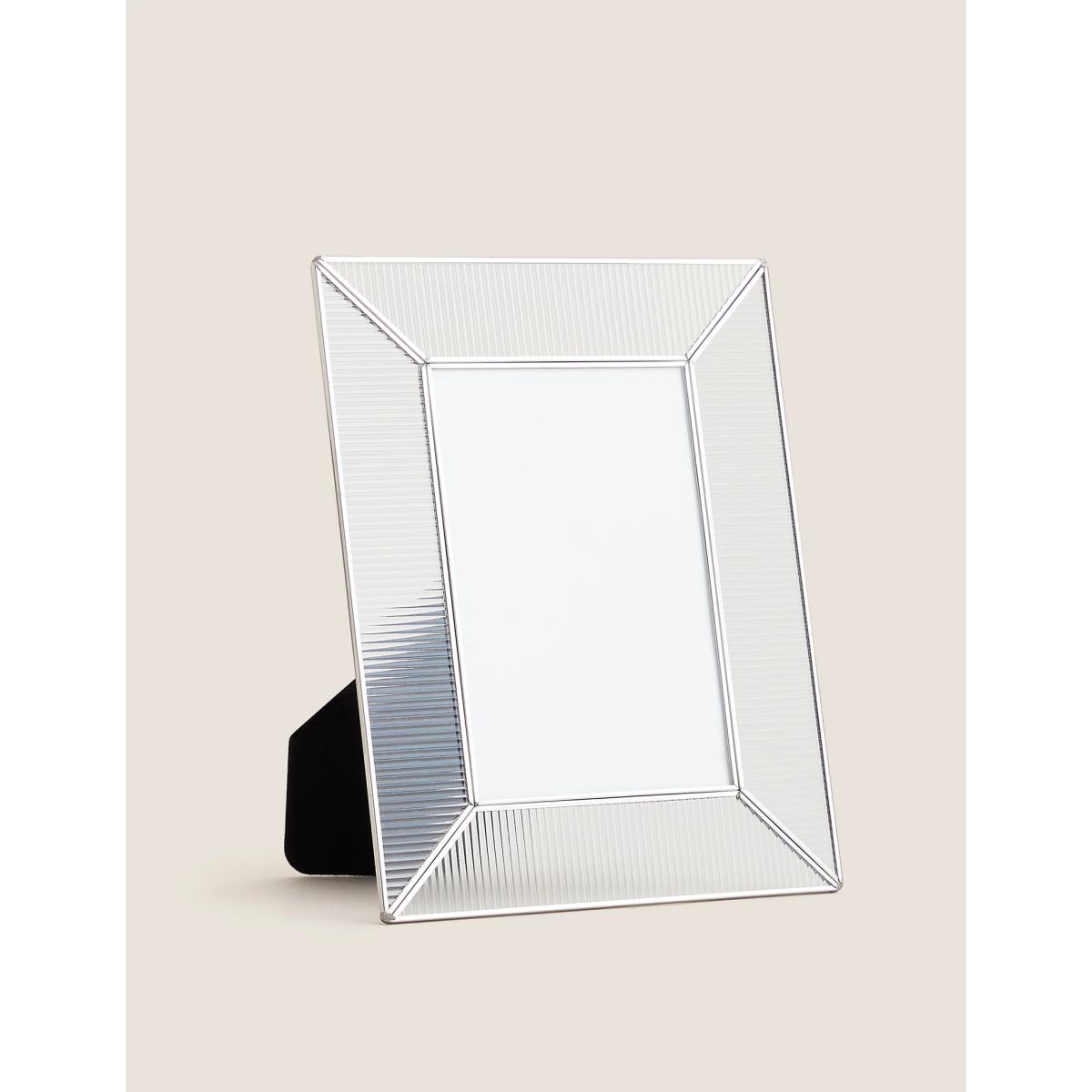 With its ribbed glass border and silver metal finish, this photo frame is a timeless way to display a treasured photo or meaningful note. The medium 4x6 inch size and accompanying stand make it perfect for placing on tabletops and mantelpieces, plus it can be used in a portrait or landscape position. It's also available in 5x7 inches and a gold finish.