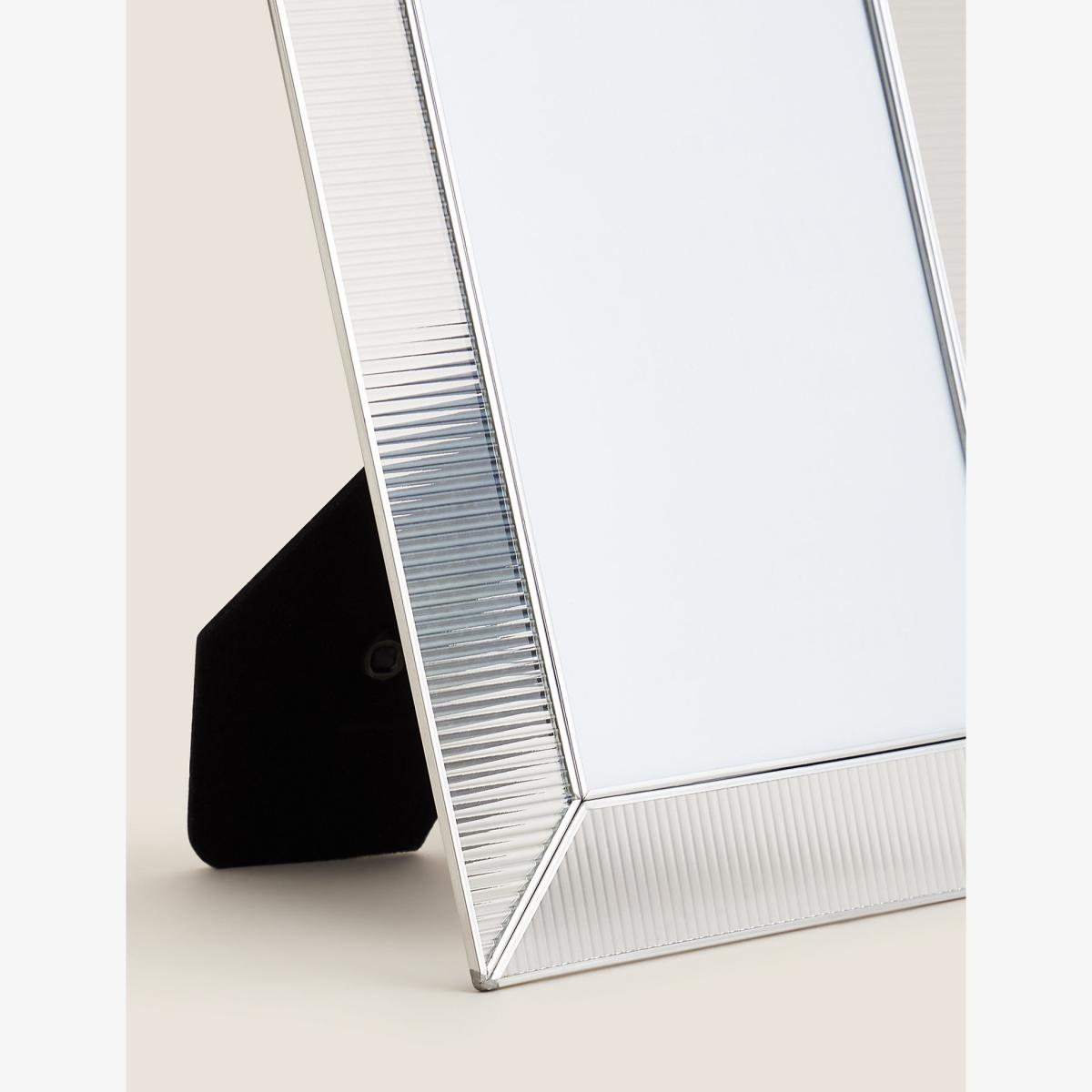 Let your treasured moments speak for themselves with this 5x7 inch photo frame from our Monroe range. Featuring an understated ribbed glass border and silver finish, it will suit both classic and contemporary interiors. This frame can be used portrait or landscape and is available in a 4x6 inch size, as well as a gold finish.