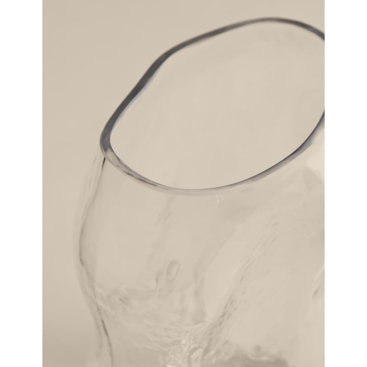 I love this clear twist glass vase for its understated elegance and versatile design. Its organic shape and textured finish mean it works well in a variety of interior styles, from modern minimalism to cosy rustic interiors. It's particularly effective when styled as a standalone piece with a single statement flower or a small bunch of seasonal blooms, letting the shape and clarity shine. For a fresh look, try pairing it with other textured glassware or metallic accents. It's practical for creating displays on side tables or shelf corners, adding a touch of subtle sophistication without overpowering the space.