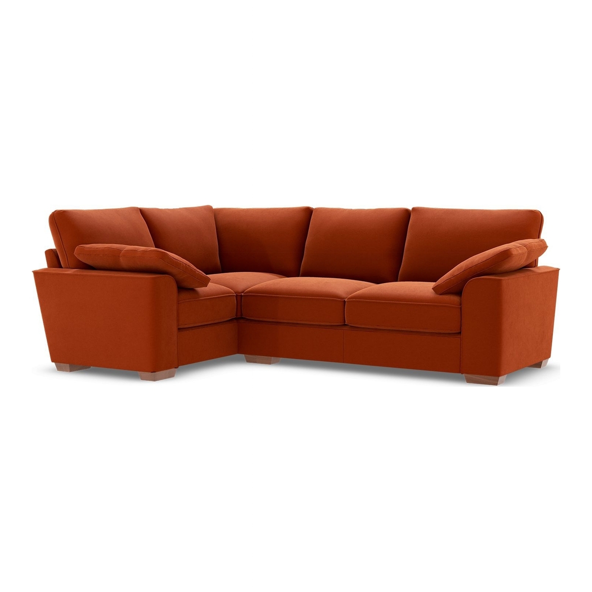Easily slot our Nantucket extra small corner sofa into the left side of any living space for maximum seating while taking up minimal room. Its angular, modern design complemented by slanted arm pillows helps this sofa add a contemporary element to any room. Some of our upholstery fabrics are treated with Aquaclean technology, so stains can be removed using only water. Available on Aquaclean Weave and Aquaclean Velvet.