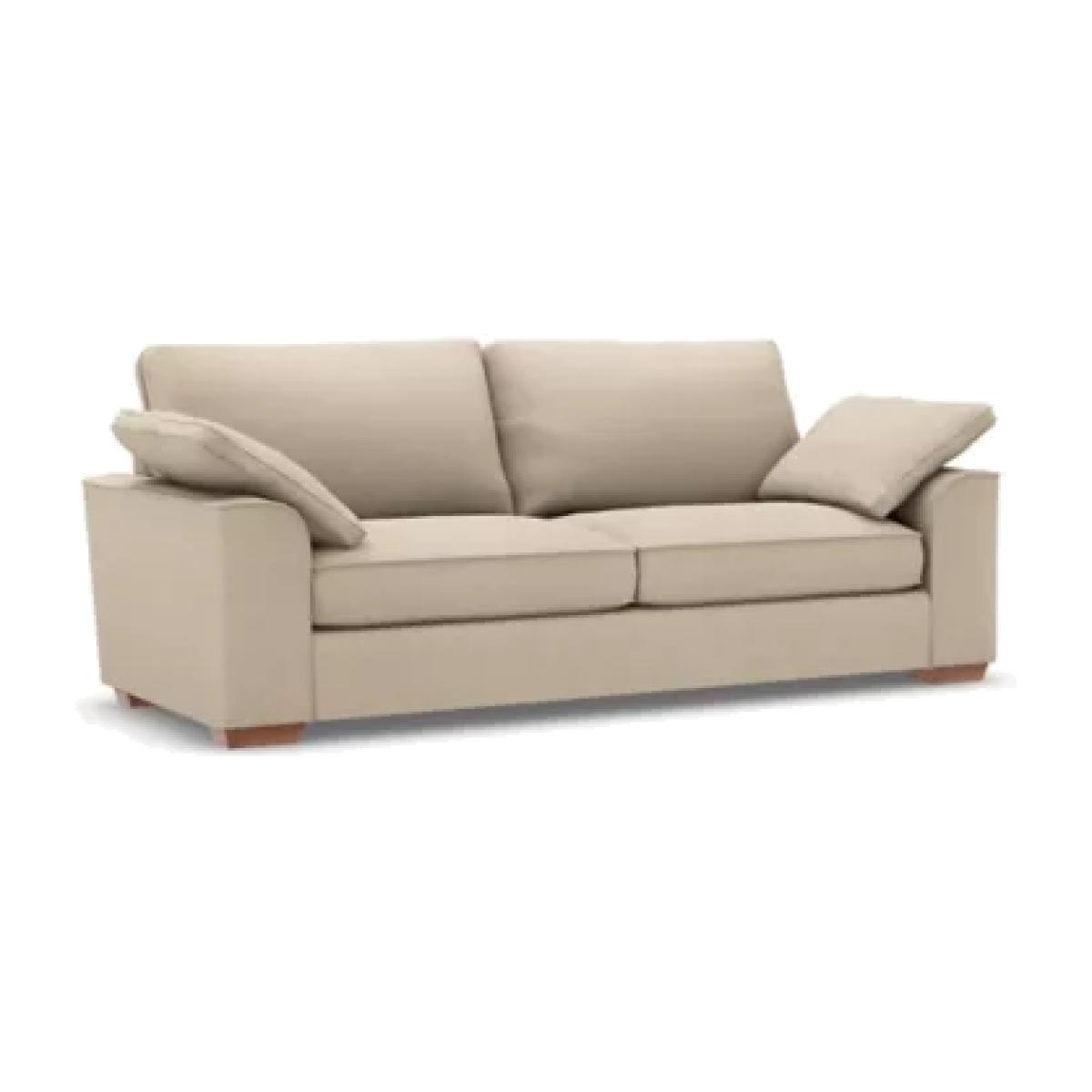 I love this sofa for its versatility and understated style. It works particularly well in relaxed living rooms or coastal-inspired interiors, thanks to its clean lines and neutral tone. The large scale makes it ideal for family spaces or open-plan arrangements, inviting everyone to sit comfortably. To style it effectively, consider pairing it with textured cushions or throws in subtle colours to add visual interest without overwhelming its simple silhouette. Barely-there accessories like a cosy rug or a couple of statement lamps can complete the look and keep the space feeling welcoming and balanced.