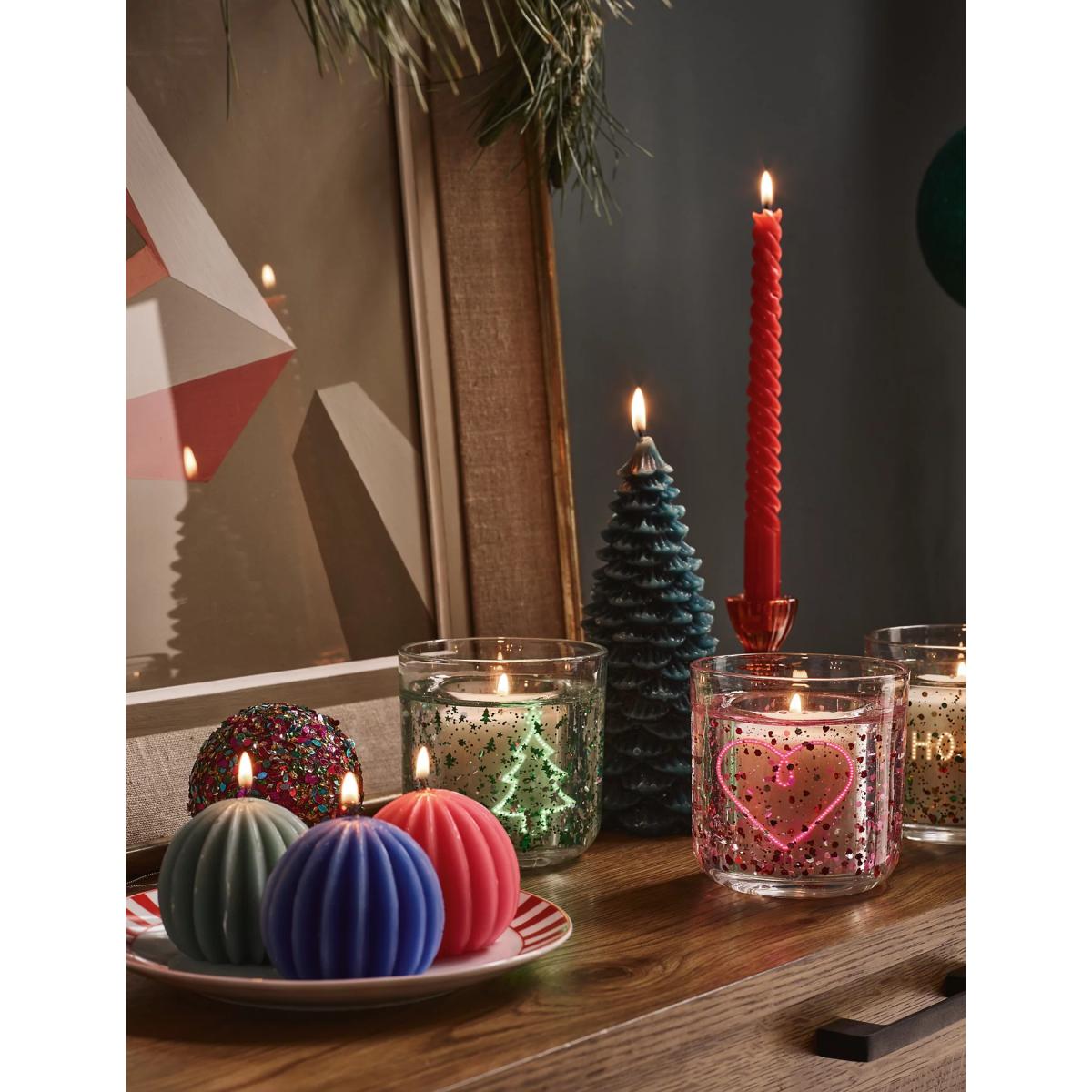 I really like this candle because it combines a fun, youthful vibe with a contemporary touch thanks to the neon heart light feature. It works well in playful, modern interiors or even as a statement piece on a centre table or mantel in a cosy living room. To style it effectively, I’d suggest pairing it with soft pinks or metallic accents to create a warm, inviting look. For added impact, try placing it on a mirrored tray or with other decorative candles in similar tones to elevate its visual appeal. It’s perfect for adding a pop of colour and a bit of personality without overwhelming the space.