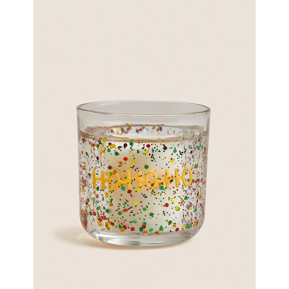 Bring a fun feel to your Christmas decorations with this scented candle. Fragrant notes of apple and spice evoke the warmth and spirit of the festive season. The glass container features a neon-effect 'ho ho ho' slogan, which has a warm white glow when the candle is lit. This fragrance is part of the Fruity family of fragrances. Fruity scents are refreshing and tropical and will often have notes of berries and non-citrus fruits such as pomegranate, apple and sweet pears.