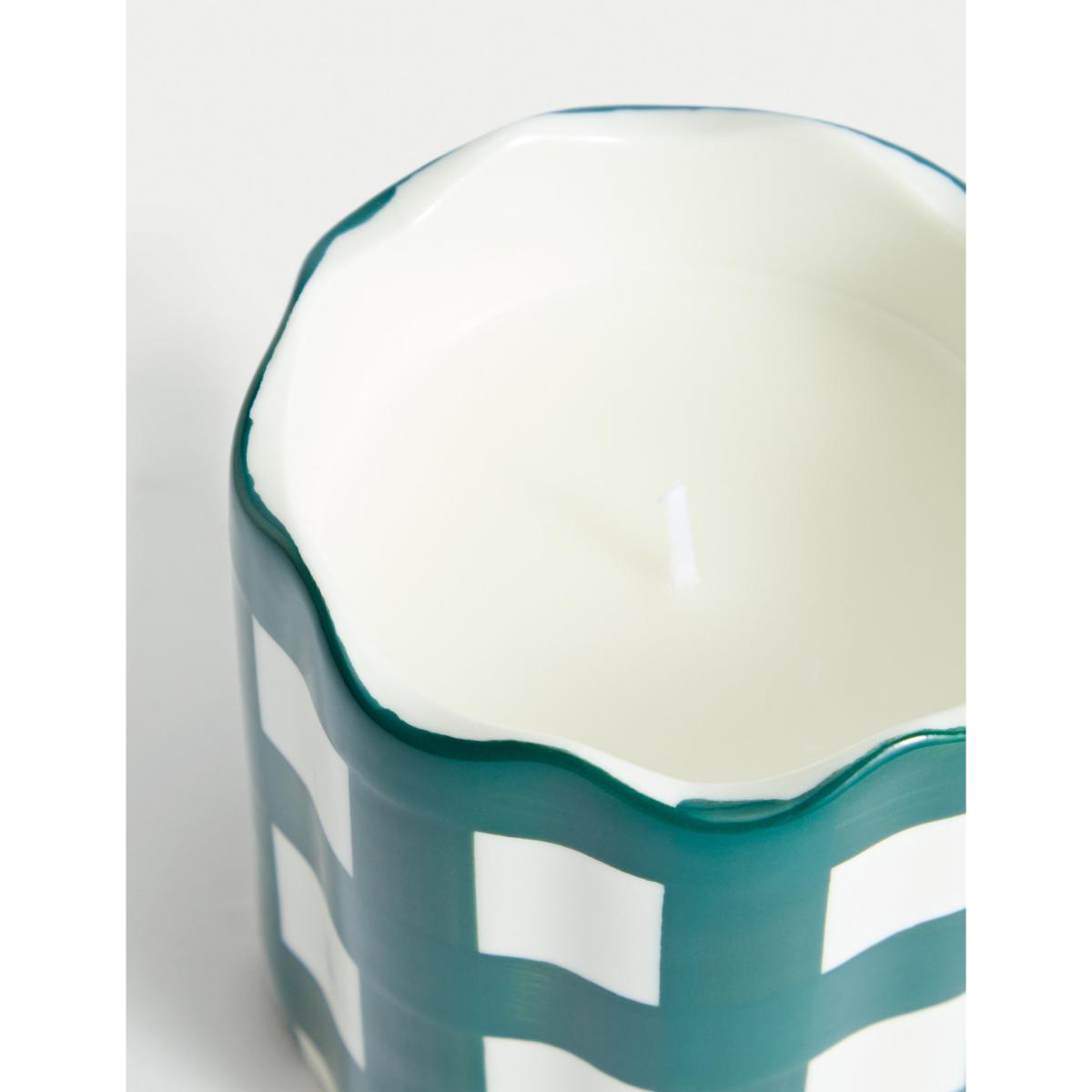 With its eye-catching design and classic scent, this small scented candle looks as good as it smells. The ceramic jar features an on-trend scallop edge and a bold check pattern. This candle is infused with notes of neroli, lime and bergamot for an uplifting floral-citrus fragrance. This fragrance is part of the Herbal family of fragrances. Herbal scents are often considered to have soothing and relaxing qualities and may contain notes such as lavender, cedar wood, vetiver or eucalyptus.
