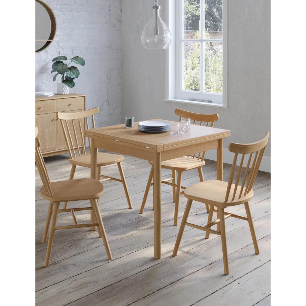 With its extending top, this Newark table is the perfect dining solution for smaller spaces. It's contemporary in design, with smooth, slender legs and a slim top that extends to accommodate up to six people. Made from oak veneer with solid oak legs, the table has a timeless grained wood finish. Matching items are available across living, dining and bedroom ranges. We’re so confident our furniture is built to last, our industry-leading guarantee covers any manufacturing failure on all furniture. That’s our promise, and why our furniture comes with a 10-year guarantee that you can trust. Excludes: outdoor furniture and any issues that are a result of normal wear and tear, improper care or accidental damage.