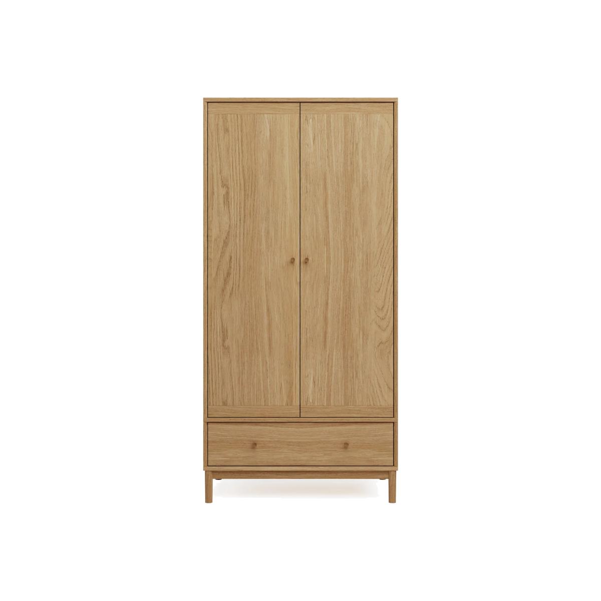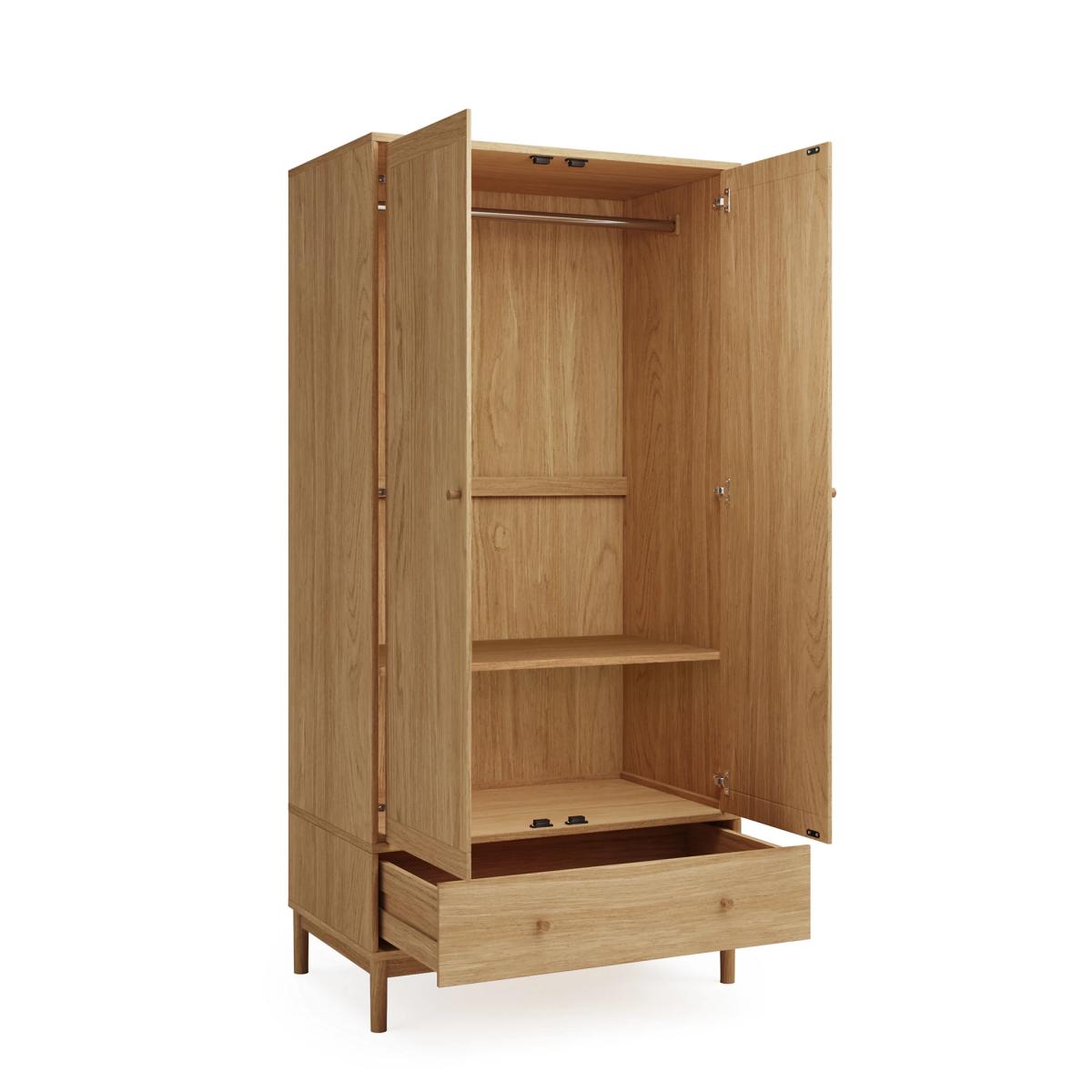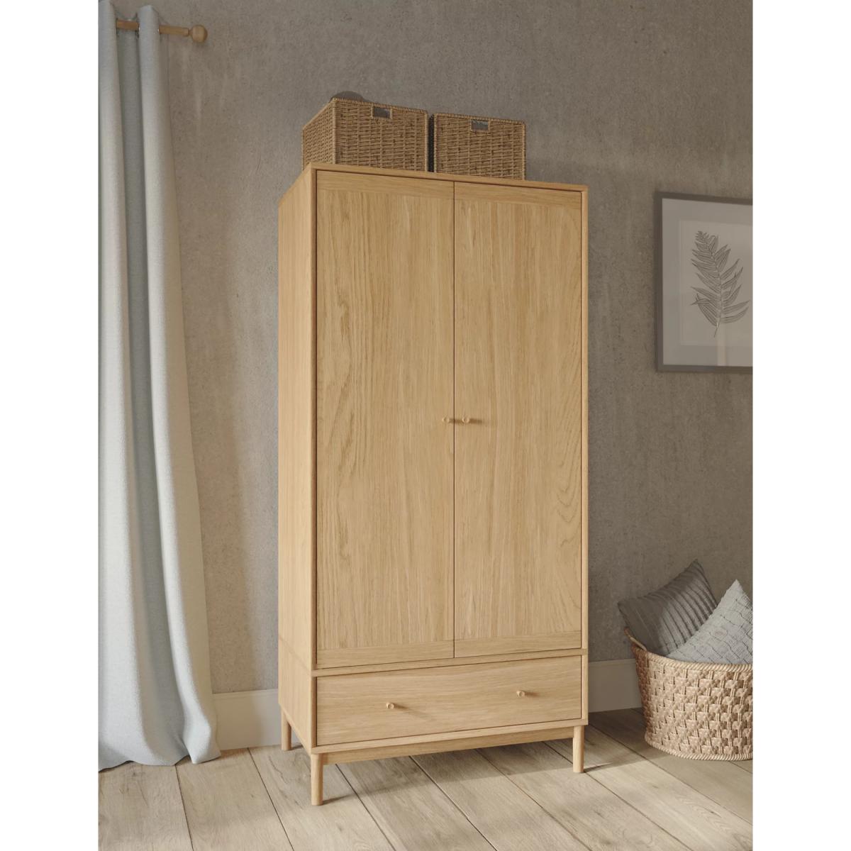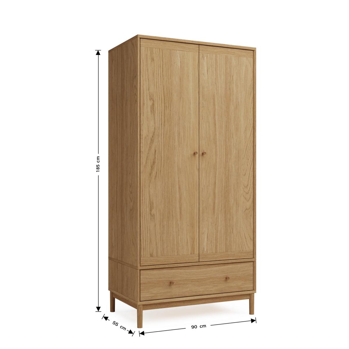 Combining plenty of space with a modern design, this double wardrobe from our Newark range is a stylish and practical storage solution. This two-door piece features a large drawer at the bottom for easy organisation, with real oak legs and handles and an oak veneer body. Contrast border detailing at the top and bottom of the doors gives the wardrobe a unique look. Discover matching pieces in our full Newark range. We’re so confident our furniture is built to last, our industry-leading guarantee covers any manufacturing failure on all furniture. That’s our promise, and why our furniture comes with a 10-year guarantee that you can trust. Excludes: outdoor furniture and any issues that are a result of normal wear and tear, improper care or accidental damage.