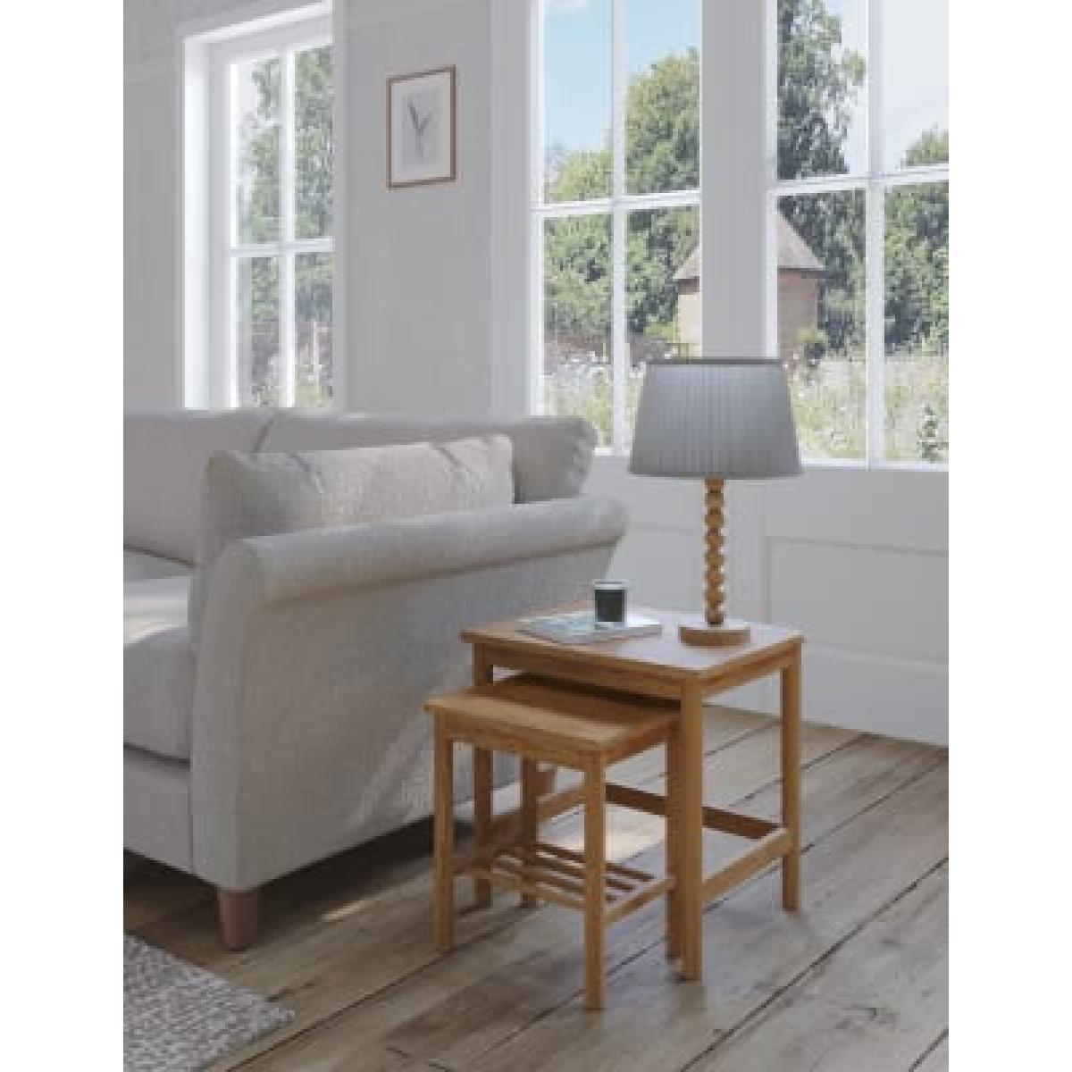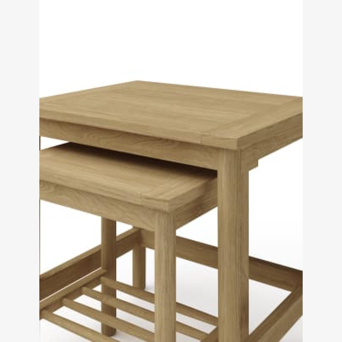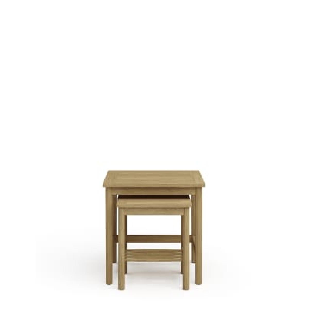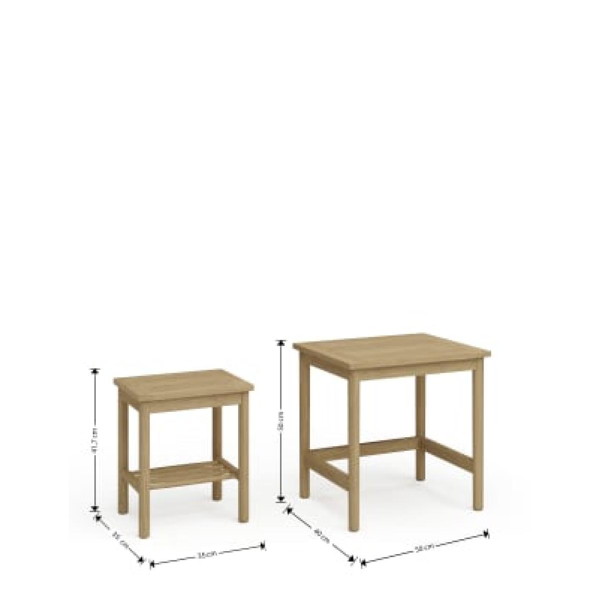 This set of two nesting tables is a great space-saving solution for smaller rooms. They're made in a clean, contemporary style with neat angles and crisp edges. Real oak legs and an oak veneer finish ensure a natural and harmonious look, and the smaller table comes with an open shelf below. Matching items from our Newark range are available. We’re so confident our furniture is built to last, our industry-leading guarantee covers any manufacturing failure on all furniture. That’s our promise, and why our furniture comes with a 10-year guarantee that you can trust. Excludes: outdoor furniture and any issues that are a result of normal wear and tear, improper care or accidental damage.