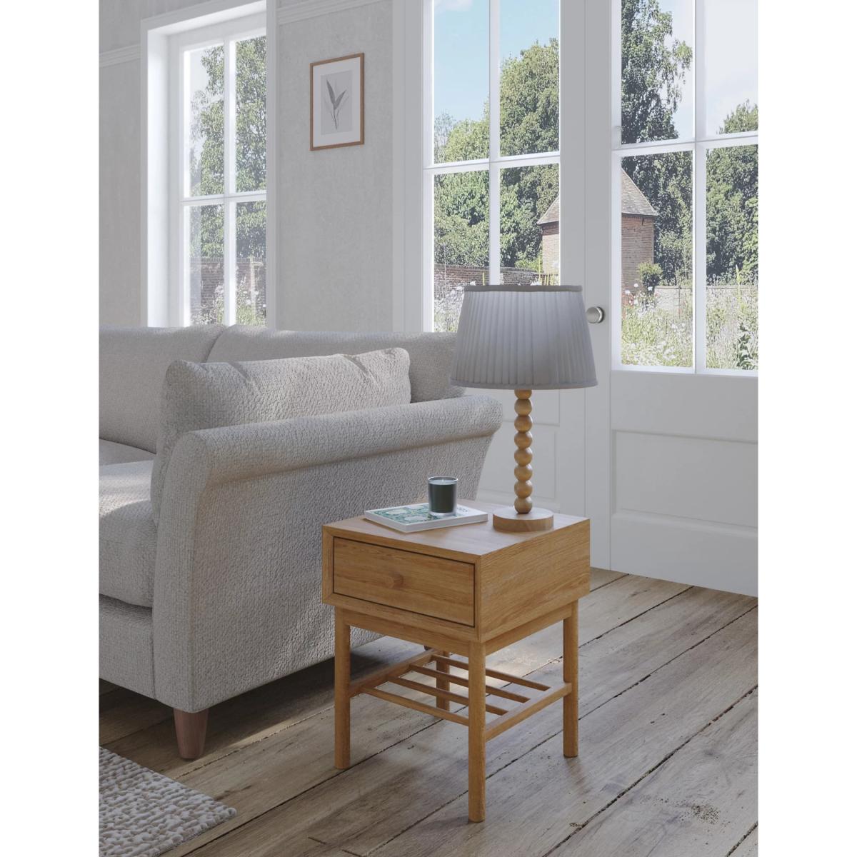 With its sturdy real oak legs and oak veneer finish, this side table brings a simple and natural air to your room. Its clean, contemporary lines are complemented by a neat storage drawer that's ideal for smaller items. Below, an open shelf makes use of every inch of space. You can complete the look with matching pieces from the Newark range. We’re so confident our furniture is built to last, our industry-leading guarantee covers any manufacturing failure on all furniture. That’s our promise, and why our furniture comes with a 10-year guarantee that you can trust. Excludes: outdoor furniture and any issues that are a result of normal wear and tear, improper care or accidental damage.