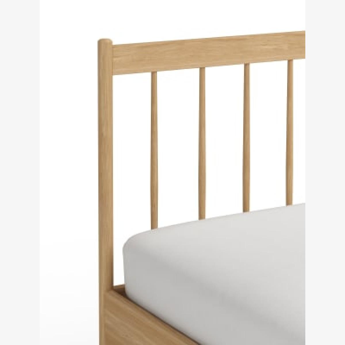 Create a cool, calm bedroom look with the spindle bed frame from our Newark range. This stylish piece is crafted from real oak and oak veneer and features a classic slatted headboard and beautifully tapered modern spindles. The low profile helps create a spacious feeling whilst providing storage space underneath. Discover matching items in our living, dining and bedroom ranges. We’re so confident our furniture is built to last, our industry-leading guarantee covers any manufacturing failure on all furniture. That’s our promise, and why our furniture comes with a 10-year guarantee that you can trust. Excludes: outdoor furniture and any issues that are a result of normal wear and tear, improper care or accidental damage.