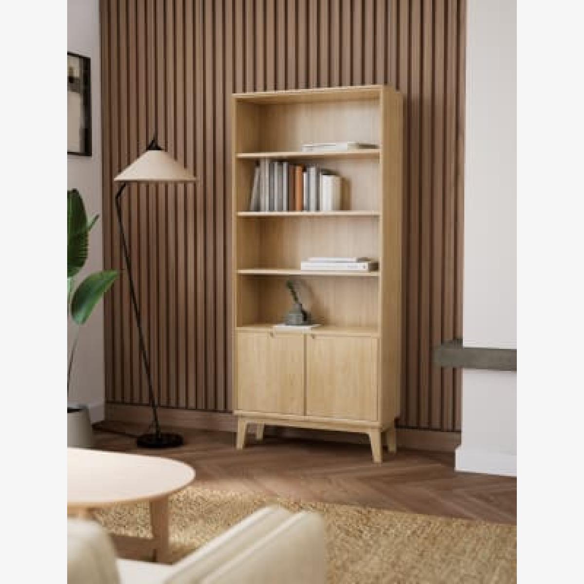 I love the M&S Nord Bookcase in oak for its clean, minimalist lines and warm natural finish, making it a versatile piece that complements a range of interiors from Scandi-inspired to contemporary. Its simple design allows it to blend seamlessly into living rooms, home offices, or bedrooms, providing practical storage without overpowering the space. For styling, I recommend using a mix of neatly stacked books, decorative boxes, and curated accessories to add personality. Placing taller items on one side can create visual interest, while leaving some shelves slightly less filled keeps it looking uncluttered. It’s especially suited for interiors that favour a calm, organic aesthetic, but its understated style also works well in more eclectic or modern settings.