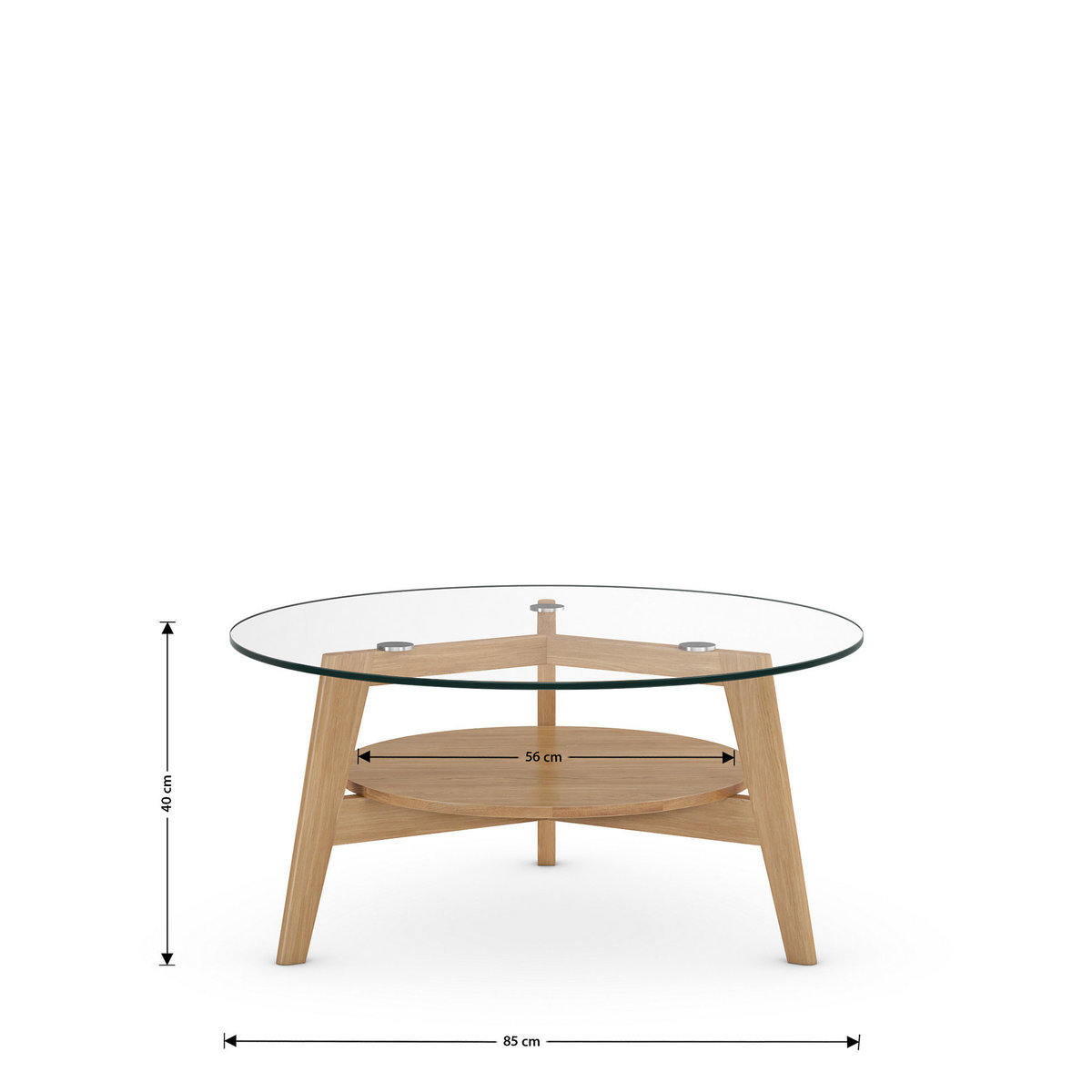 This contemporary Nord coffee table is crafted from a beautiful oak with a stylish glass top. Designed in a round shape, it provides a soft feature for living rooms. A handy storage shelf sits underneath to help keep your space tidy. Discover matching pieces in the rest of our Nord range. We’re so confident our furniture is built to last, our industry-leading guarantee covers any manufacturing failure on all furniture. That’s our promise, and why our furniture comes with a 10-year guarantee that you can trust. Excludes: outdoor furniture and any issues that are a result of normal wear and tear, improper care or accidental damage.
