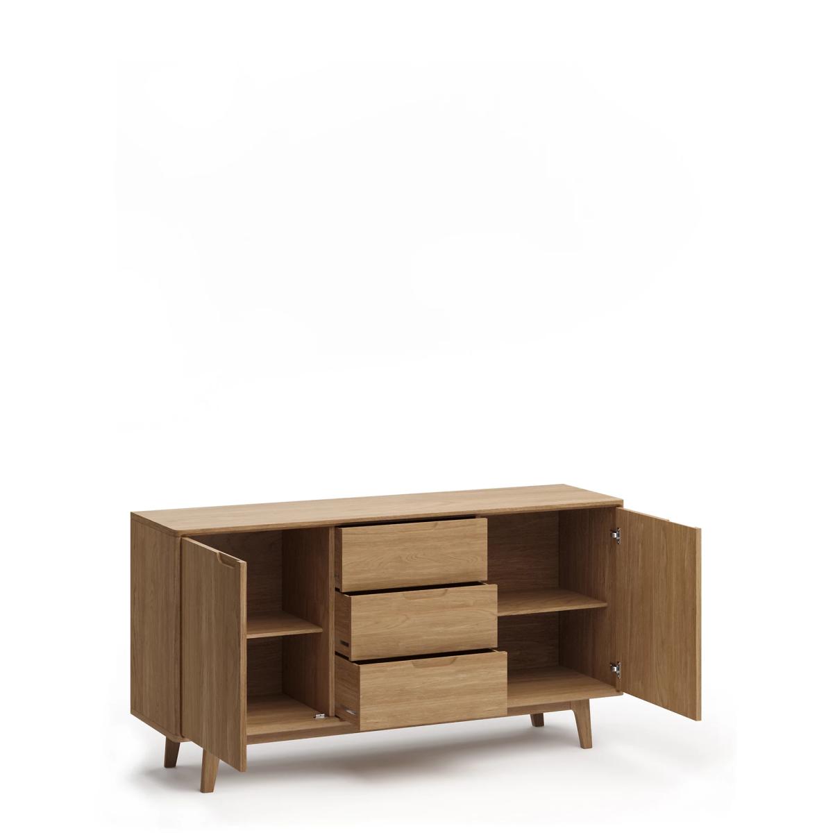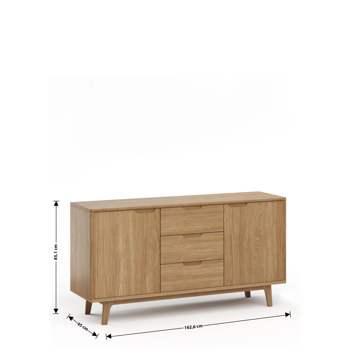 This large sideboard from the Nord range combines sleek, contemporary looks with plenty of storage. Behind the doors, you'll find generous shelved spaces that are ideal for stowing larger items. Three central soft-close drawers make a useful home for smaller bits and bobs. It is crafted from responsibly sourced wood. We’re so confident our furniture is built to last, our industry-leading guarantee covers any manufacturing failure on all furniture. That’s our promise, and why our furniture comes with a 10-year guarantee that you can trust. Excludes: outdoor furniture and any issues that are a result of normal wear and tear, improper care or accidental damage.